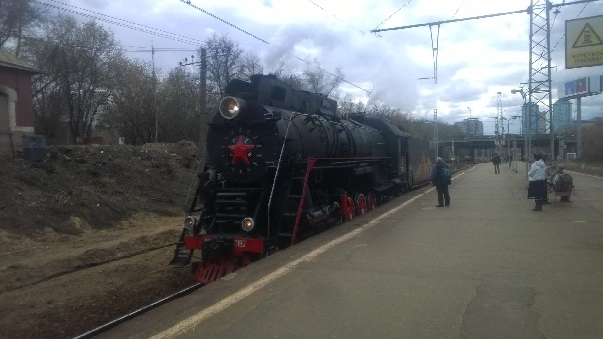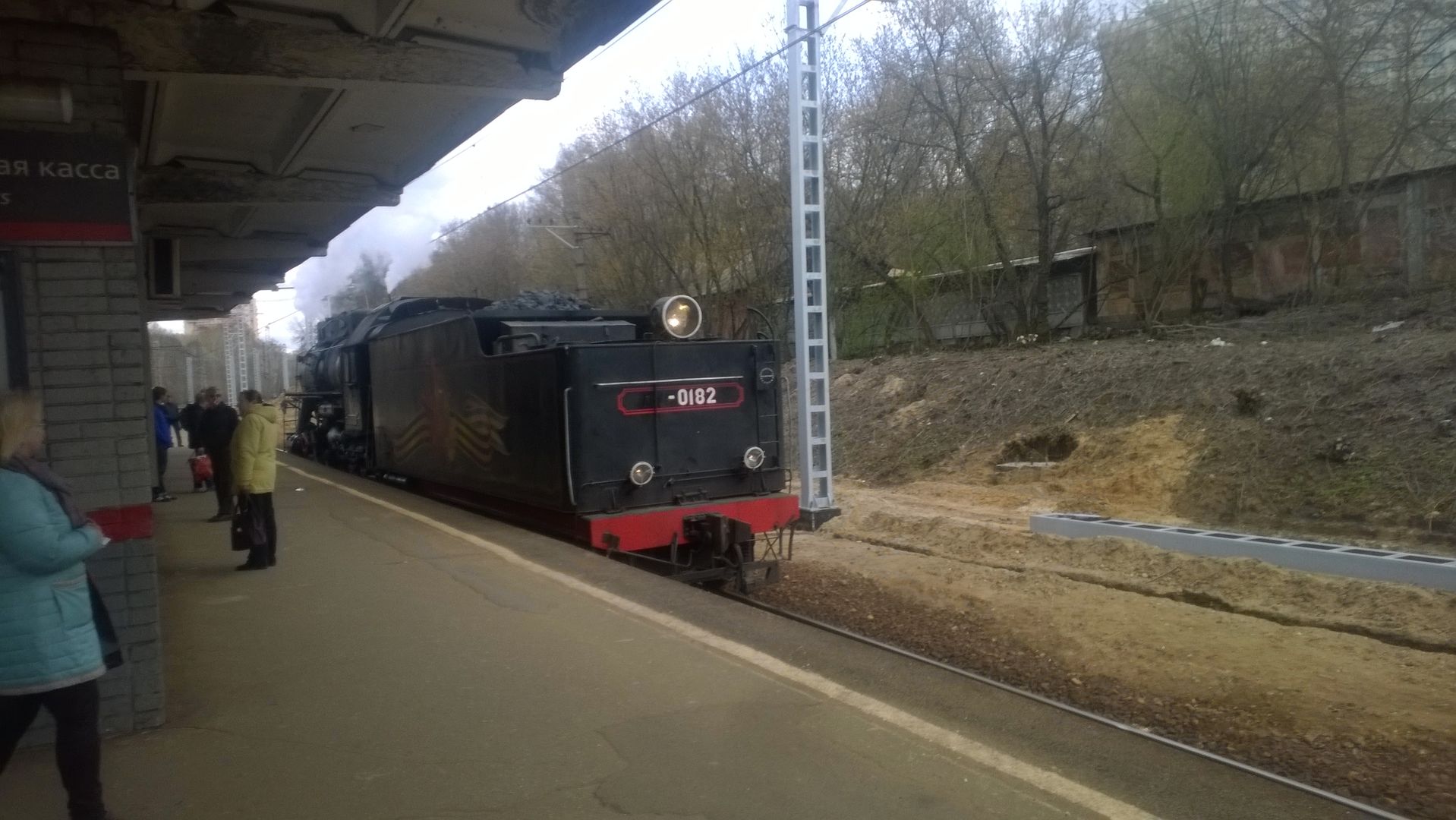 А вот небольшой сюрприз. Между электричками на Москву на 14:18 и 14:44 по II пути проехал паровоз - примерно на скорости 30 км/ч. ::-):