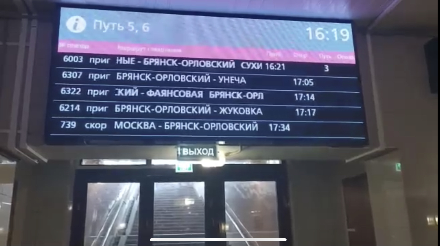 время прохождения остановки "Жд вокзал Брянск-I" 22:32