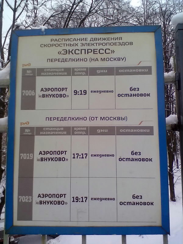 Стояла табличка с расписанием экспрессов на Москву. На момент съёмки этих экспрессов не было уже очень долго.