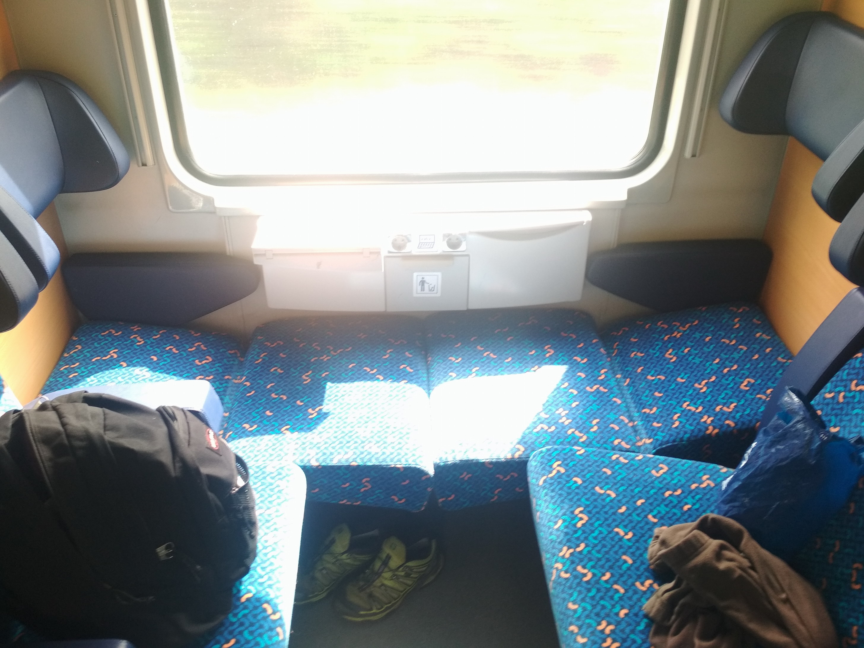 Считаю его самым удобным типом сидячего европейского вагона – сиденья напротив друг друга можно разложить и получится спальное место в полный рост: