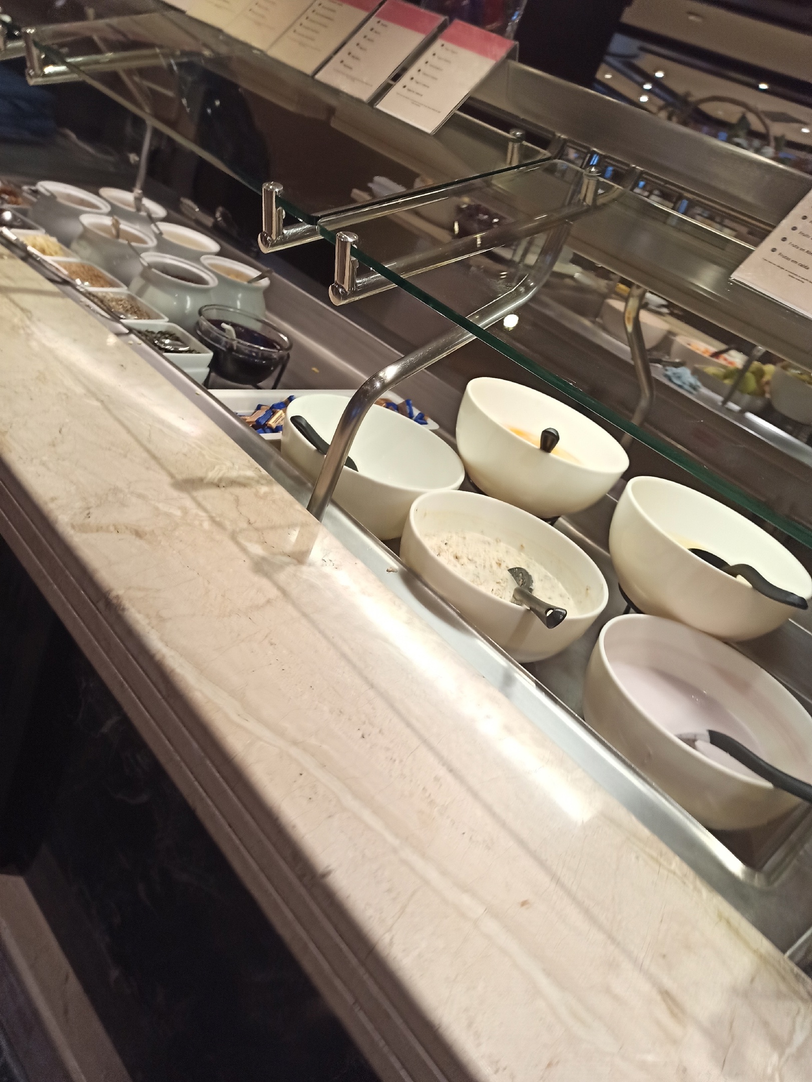 В основном ресторане питание полностью бесплатное. Работает в режиме 24/7. Народу очень много. Отдельного внимания заслуживают едва ли не драки цивилизованного мира за появившимися пончиками-какие там соблюдения очередей, дикости уровня начала 90х, когда на пустые прилавки выкидывали еду. При этом несьеденной еды официанты выкидывают столько, что можно спокойно прокормить какой-нибудь райцентр. Причем дефицита питания не было от слова совсем: всё что хочешь от веганского до свинины с жирком.