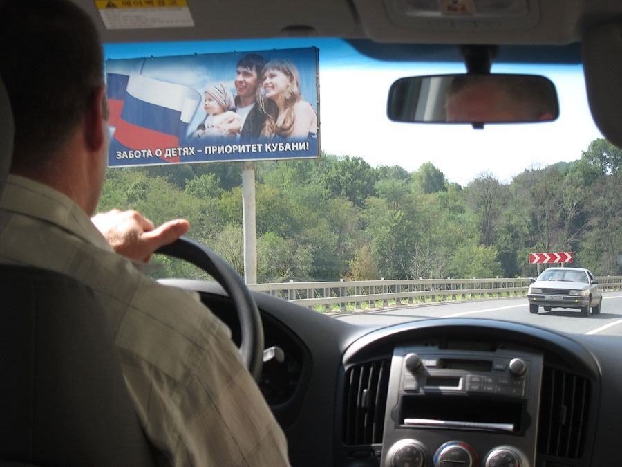Санаторский гид набрал группу из 6 человек, которая, поместившись в данное транспортное средство, тронулась из Лазаревского ровно в 9:00. А фото сделано в Дагомысе на санитарной остановке