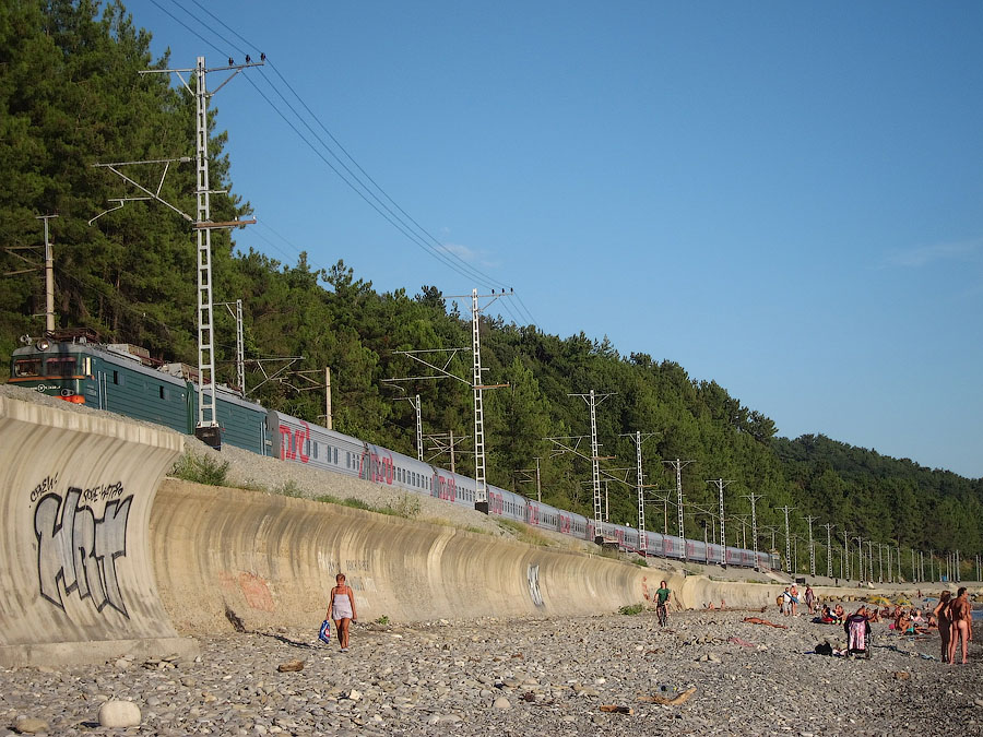 Далее по расписанию должны были быть 140Н Адлер - Новосибирск и экспресс 832А Адлер - Туапсе, но вперед пропустили бешеный 104С Адлер - Москва, у которого было всего 15 минут опоздания.