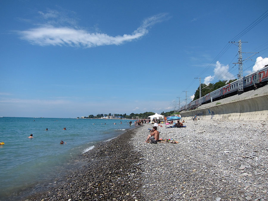 В понедельник узнаю точное время: вчера машина отвезла гида сразу домой без заезда в санаторий, а сегодня-завтра у неё выходные. Впрочем, когда ехали на такси из центра посёлка в начале десятого вечера Сочинское шоссе в противоположном направлении привычно стояло в говно... Еще одна местная мадам разговаривала громко по телефону в электропоезде: говорила, что ехала из Гагры, просила, чтобы разогревали еду из холодильника, и обратила внимание на ужаснейшие пробища по дороге и на границе.