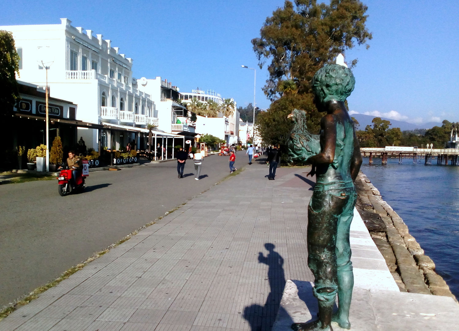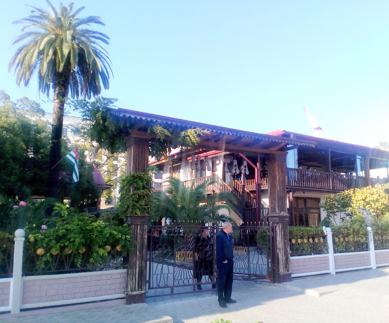 Разумеется, труба пониже да дым пожиже.Короче, развернулись и ушли в нашу УЮТНУЮ кафешку нависающую над морем на территории санатория МВО, где как раз в уютной спокойной (!) атмосфере насладились теми же изысканными абхазскими национальными блюдами за гораздо меньшую цену!