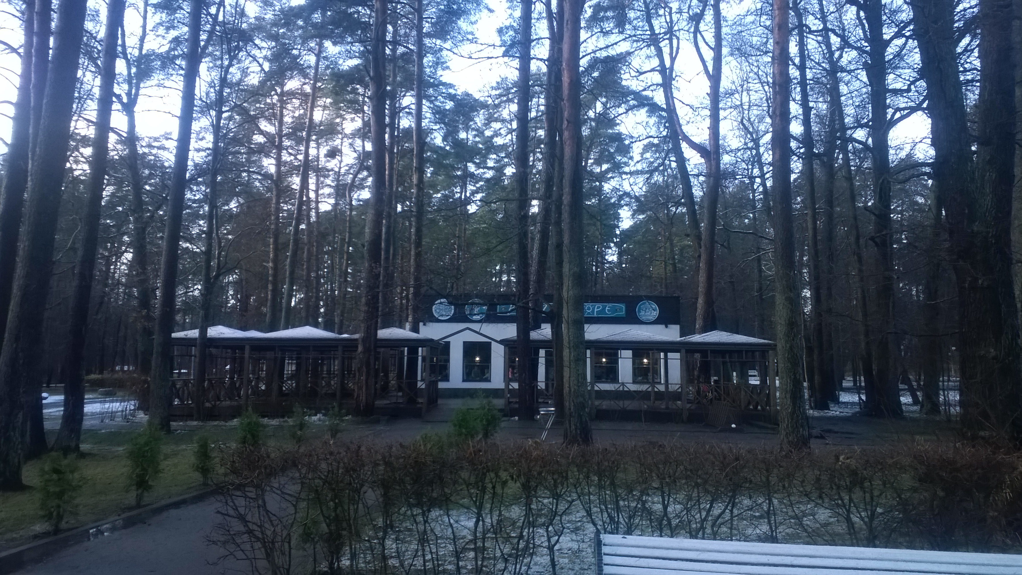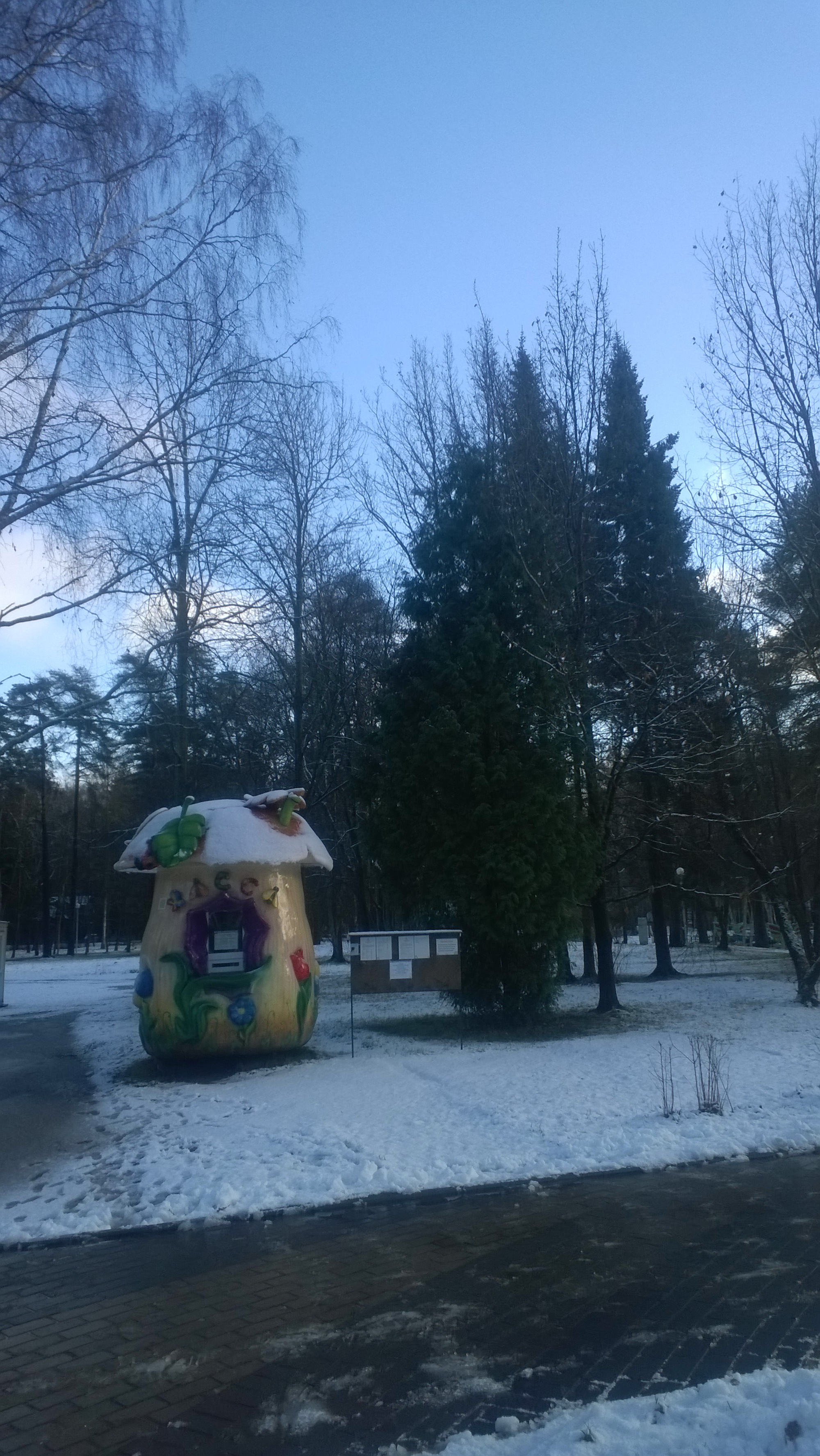 В парке много елей и сосен, есть аттракционы, например, колесо обозрения. В целом, впечатление приятное.