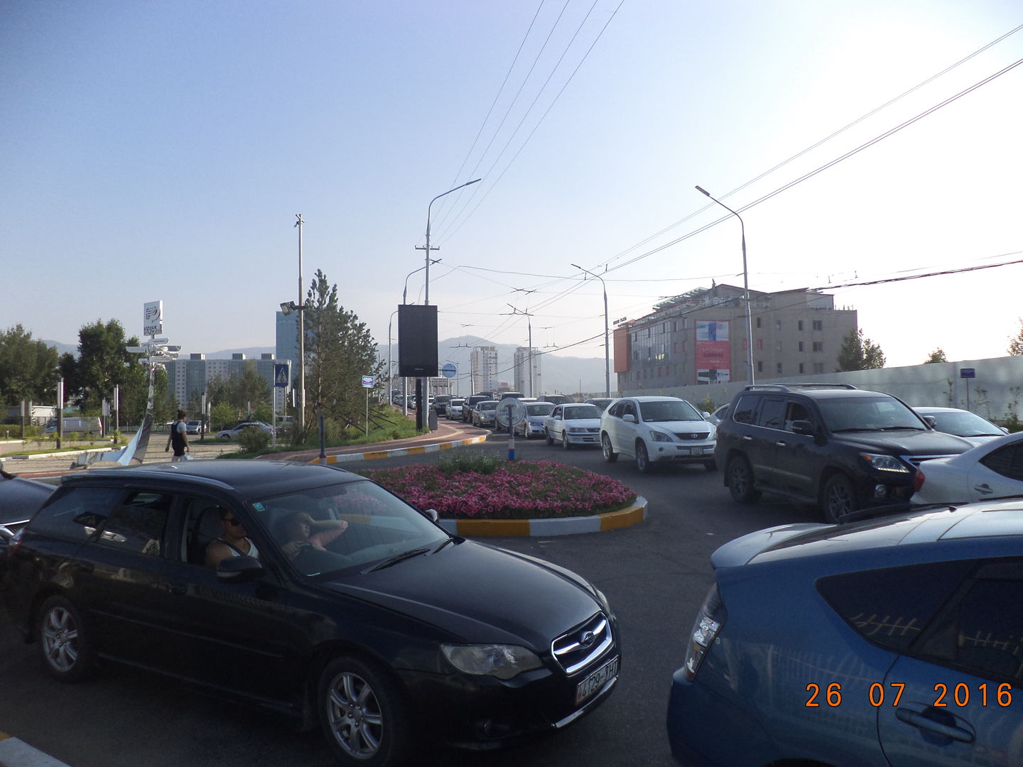 Времени было около 7 часов, машин очень много. Надо сказать, что их у монголов точно не меньше, чем у нас. По крайней мере, все дворы забиты машинами, где можно, и где нельзя стоят.