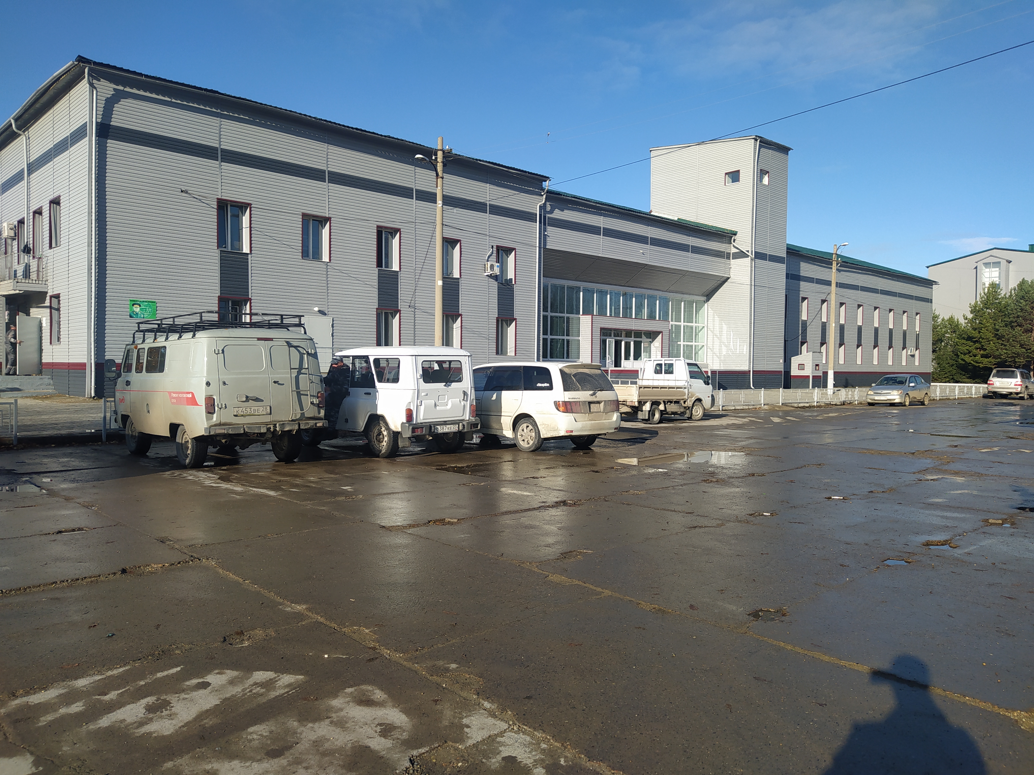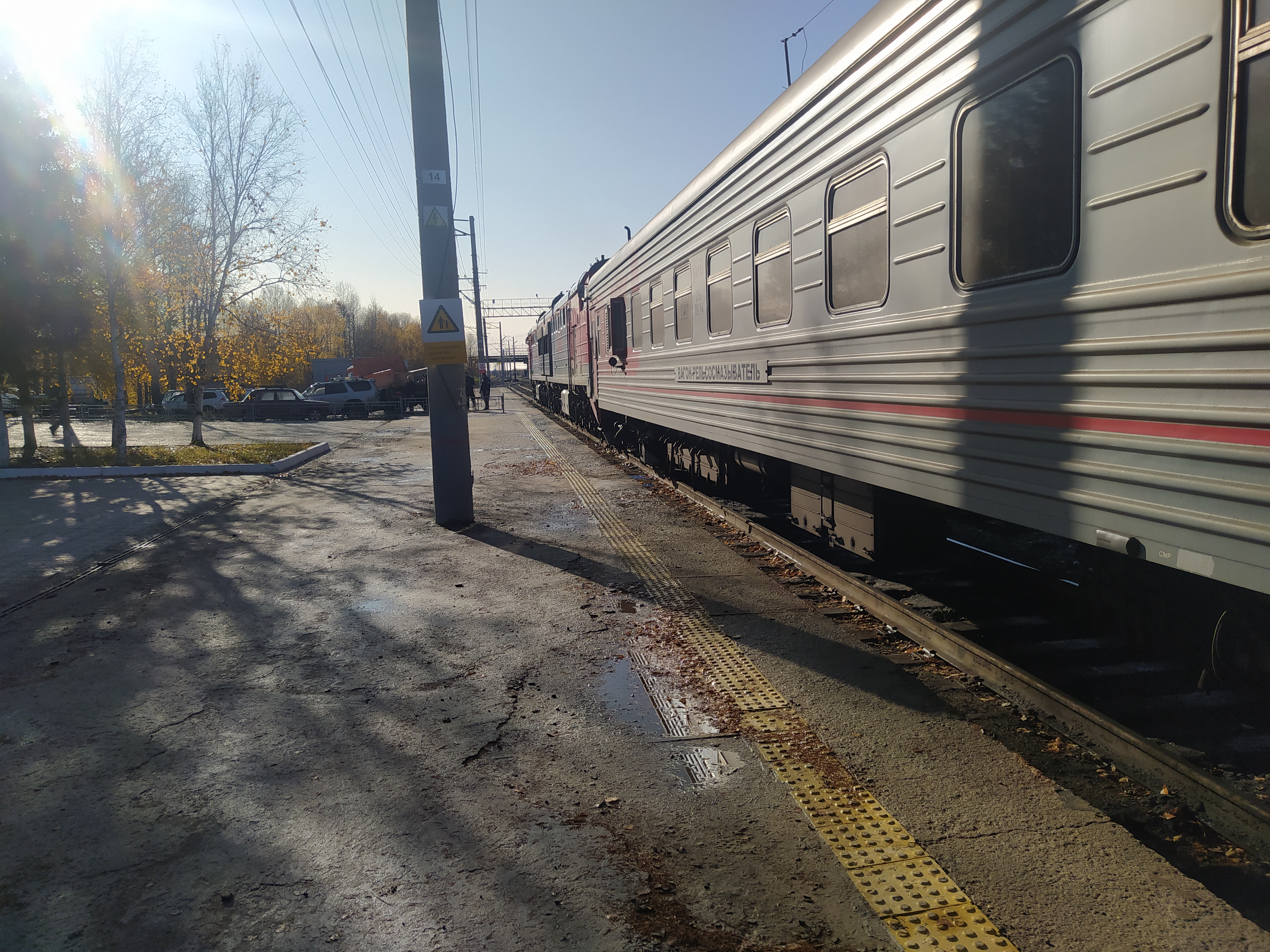 Февральск. Два соседа вышли, два вошли. Отцепили два вагона с хвоста. Сходил в посëлок до магазина за водой. Дождь видимо был здесь, сейчас солнечно и тепло вполне.