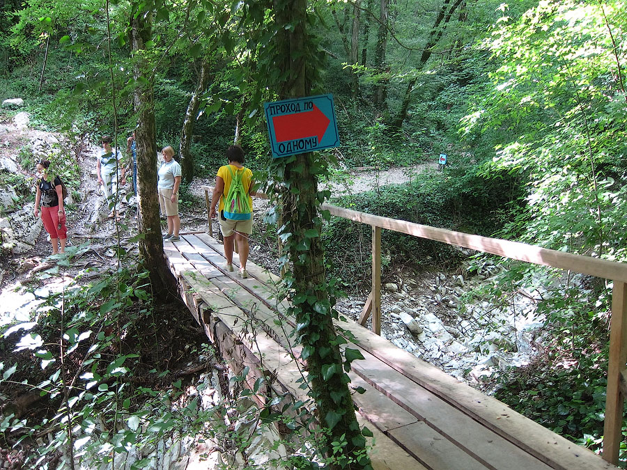 Далее вверх по тропинке и мосту поднимаемся к живописному трехкаскадному водопаду общей высотой около 15 метров.