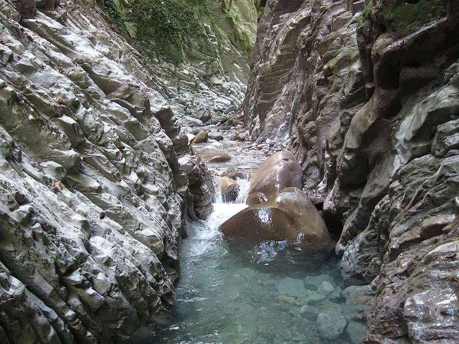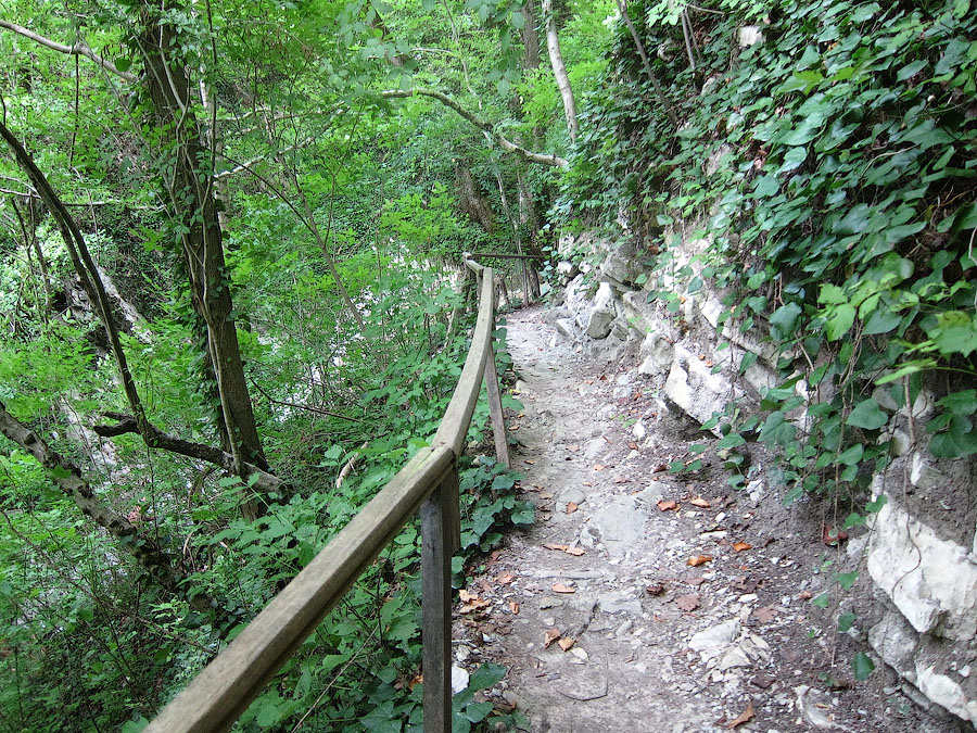 Ущелье украшено слоистыми известняками мелового периода. Над обрывами возвышаются тенистые дубы, клены, каштаны, грабы.