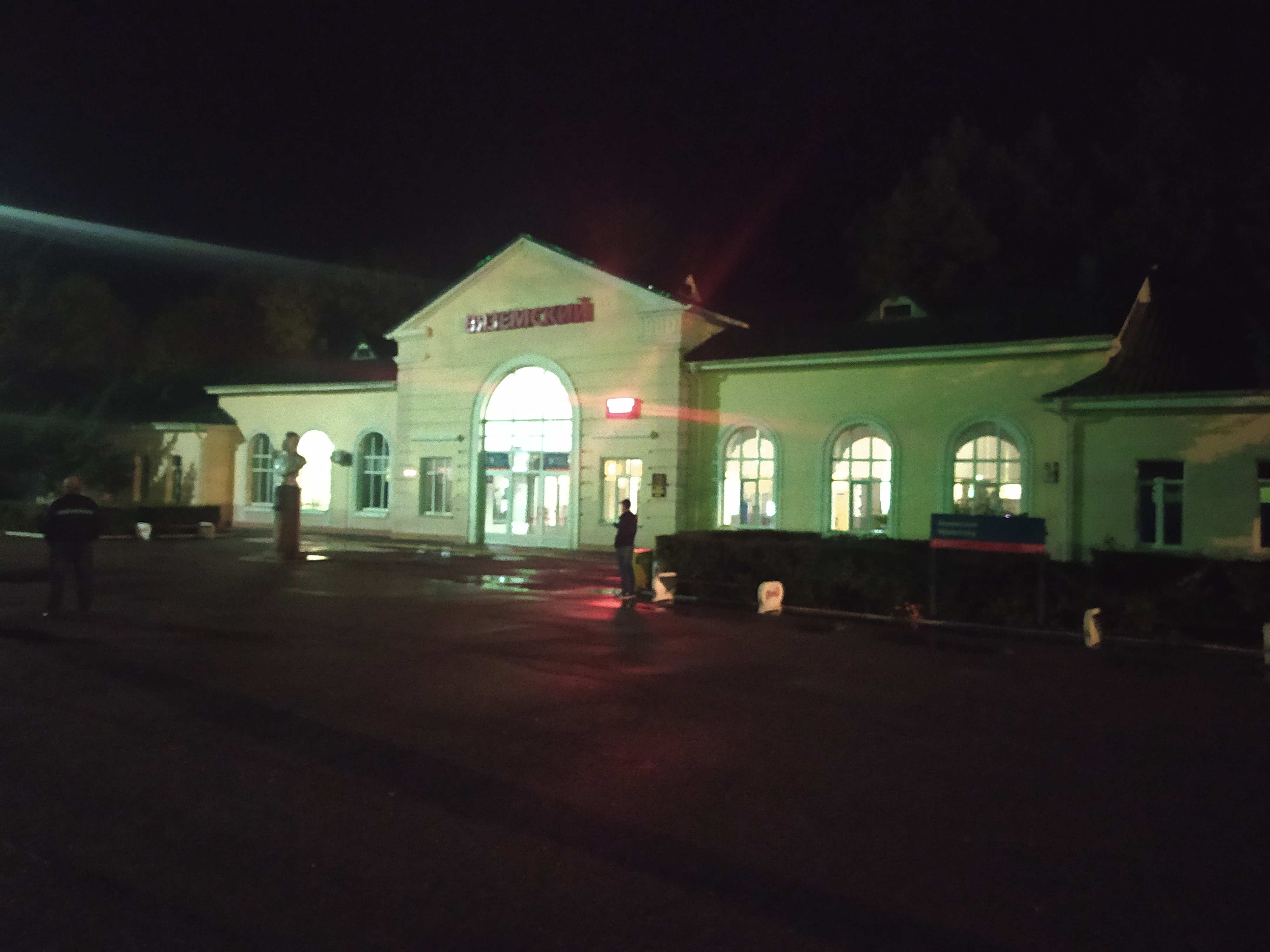 Вяземская, стоянка 15 минут. Дождя здесь уже нет. Есть торговля на платформе.