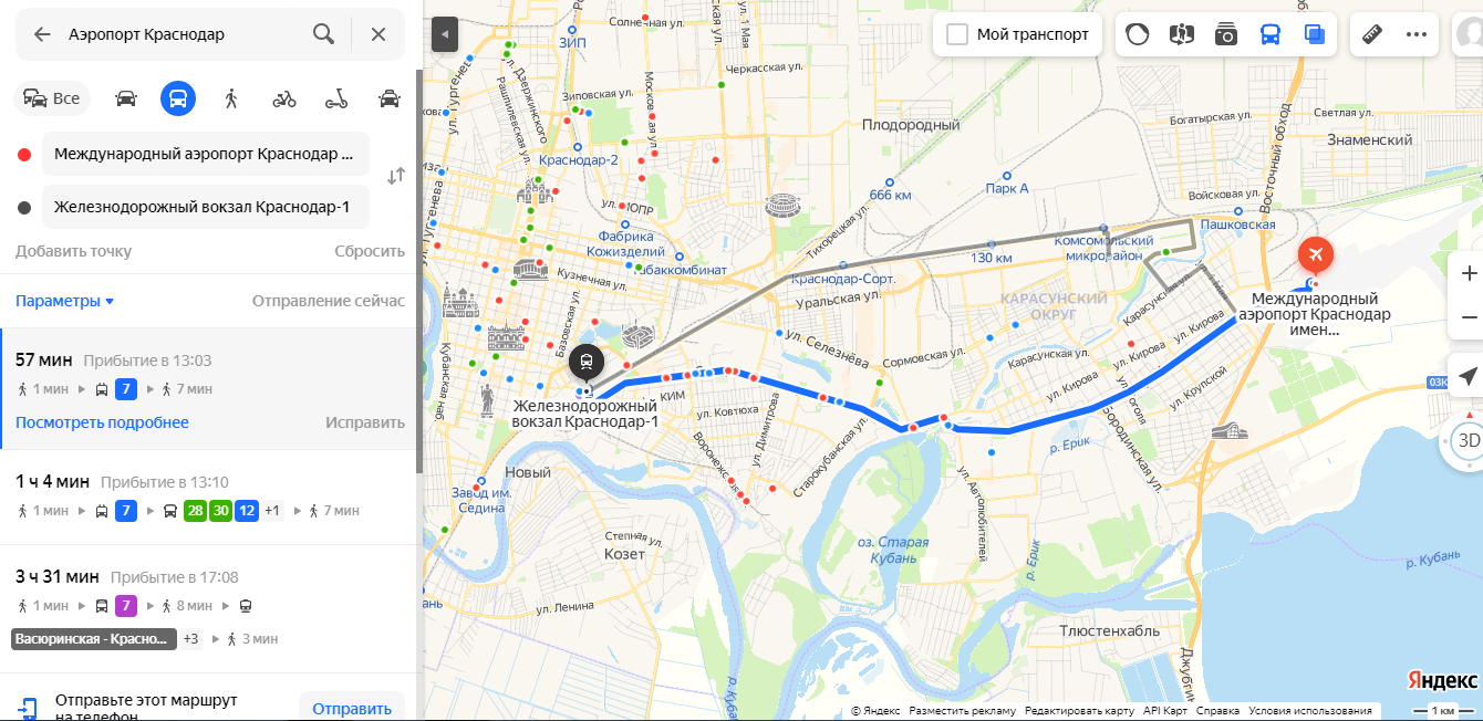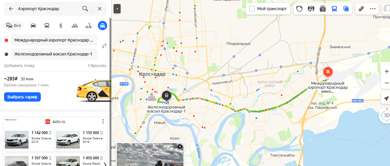 Кто знает, за сколько реально от аэропорта Краснодара до жд вокзала утром добраться?