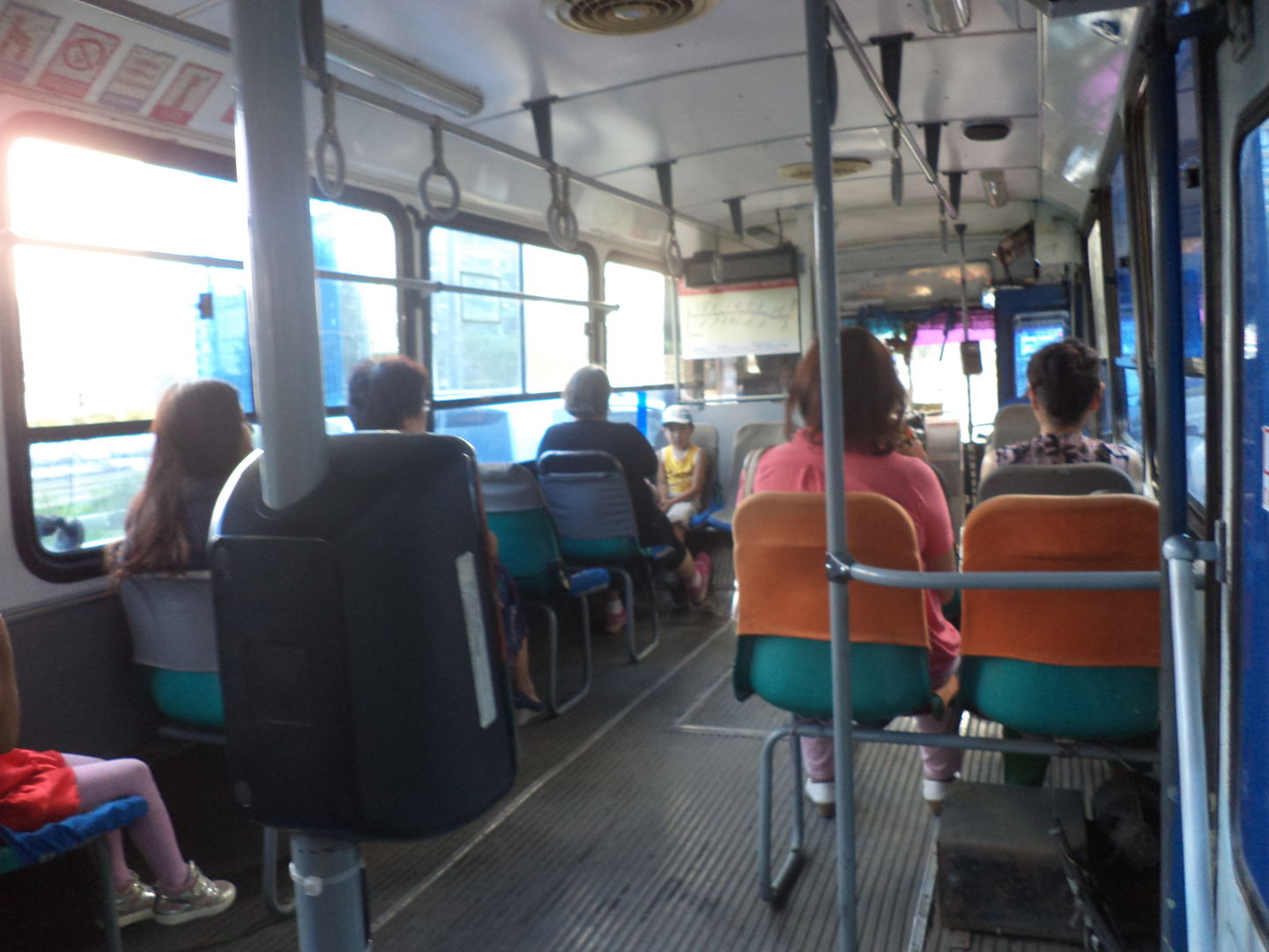 После музея мы ездили на вокзал, узнать цены в камере хранения, о чём я уже рассказал. Вот, кстати салон троллейбуса: