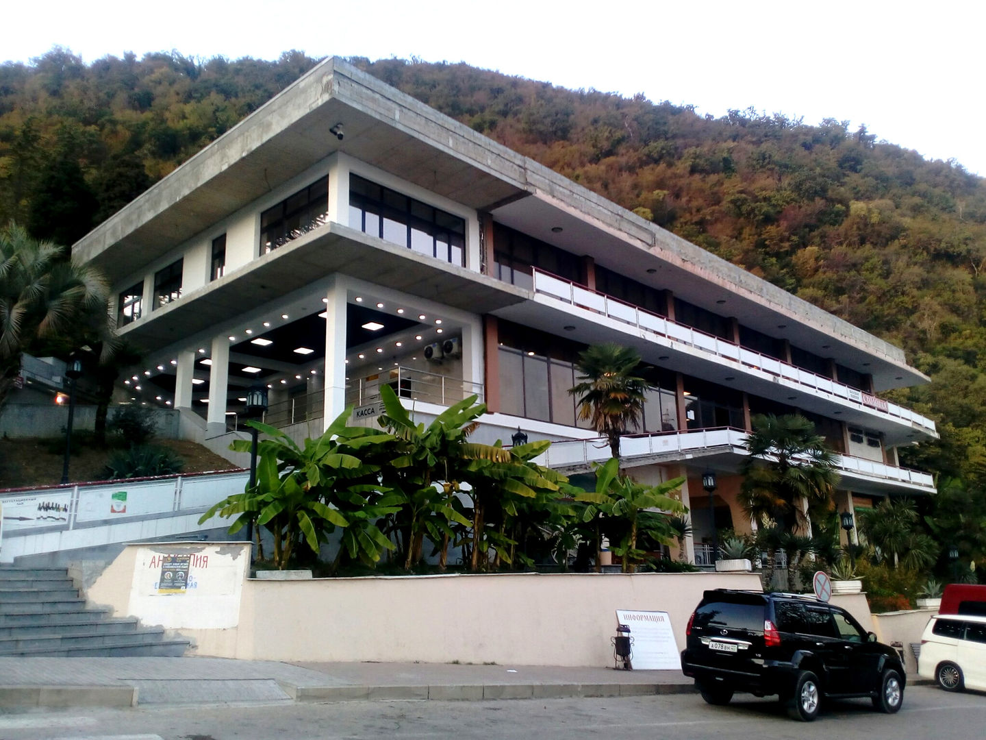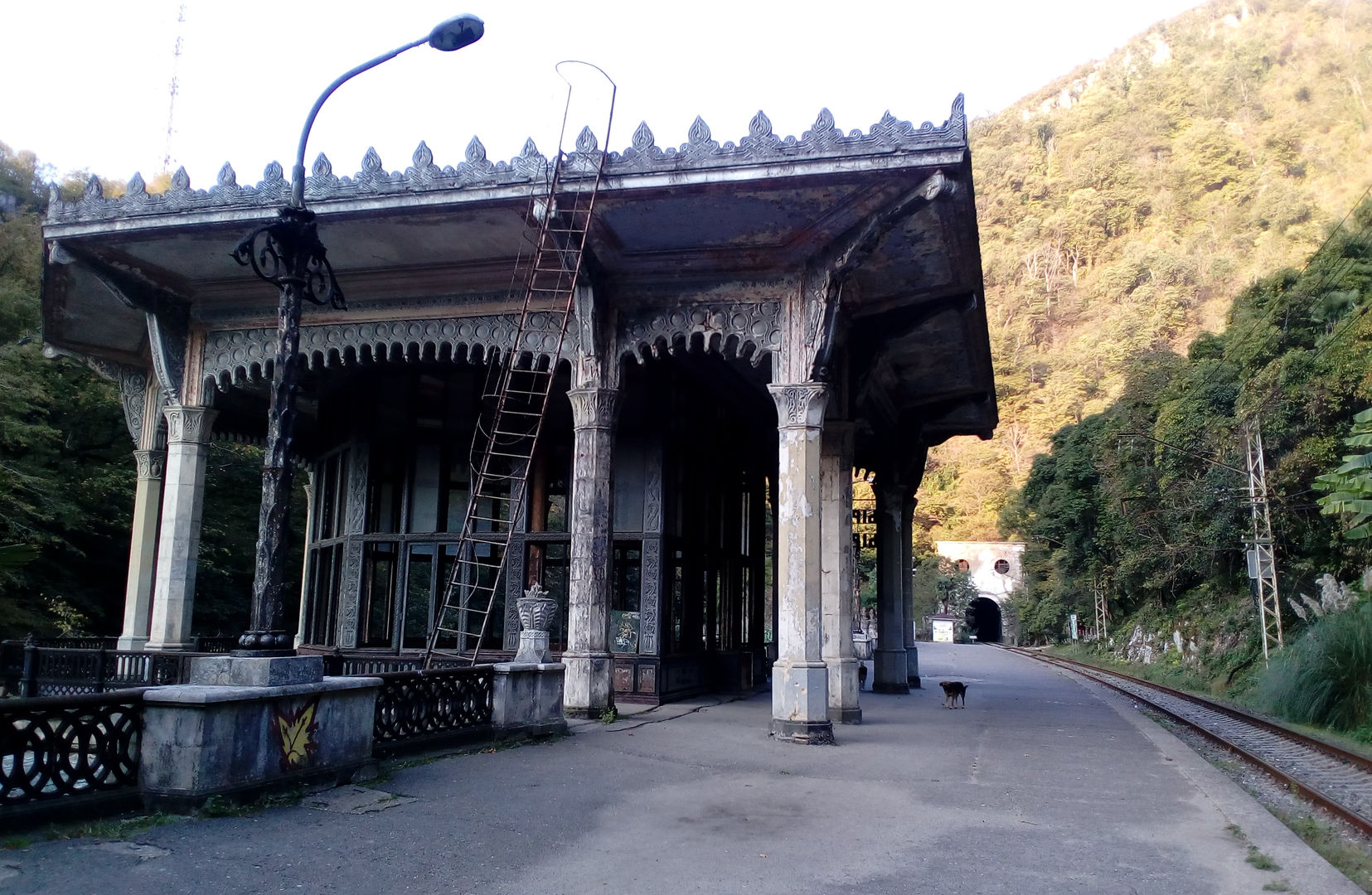 Железнодорожный вокзал располагается в периферийной, не особо привлекательной для туристов части Нового Афона