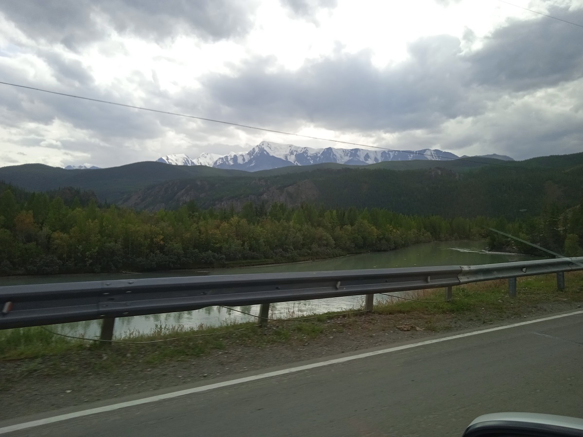 Утром рано пошел из гостиницы в направлении выезда из города, и напротив одного магазина увидел, как казахи пакуют вещи и рассаживаются в 3 микроавтобуса. Подошел к ним, они сообщили что едут в Астану и довезут меня до Кош-Агача, за 2000 рублей. Торговаться было неуместно, да и все складывалось по плану и по времени. Через полчаса машины тронулись, и к 8.00 мы приехали к закрытой границе, работает с 9.00, это был понедельник. Впереди стояло 45 машин, почти все с Монгольскими номерами, редко с казахскими. И справа за поселком была очередь из новых тягачей и новых транзитных иномарок, следовавших в Киргизию на растаможку и далее в Россию. (Л- логистика). Открылась граница, много машин сразу поехало под шлагбаумы, очередь заметно продвинулась. Меня пересадили в другую машину, которая следовала в Кош-Агач, но находилась уже под шлагбаумом. На границе Монголии про другой штамп не спросили, на российской границе сотрудник РСН спросил как я себя чувствую), а погранец спросил откуда именно я из Белгородской области - он сам оказался из Курска. Через минут 40 меня высадили возле супермаркета Мария Ра и я сразу нашел в группе ВК попутку до Горного за 1400 рублей. Ехал впереди, слева. Останавливались покушать на повороте на Белуху. Пейзаж менялся от пустынного до горного и лесистого. Ближе к Горному пошел дождь. Перед закатом приехал в Горно Алтайск, заселился в гостиницу в центре, фасад был на ремонте. В запасе был еще один день до вылета, на следующий день сгонял в Чемал, но и там дождь застал. из Чемала сделал остановку в Манжероке возле остановки автобуса, а на горе работа идет, Сбербанк устанавливает канатки и расчищает полосы. Вернулся в Горный, утром вылетел в Домодедово, успел на электричку.