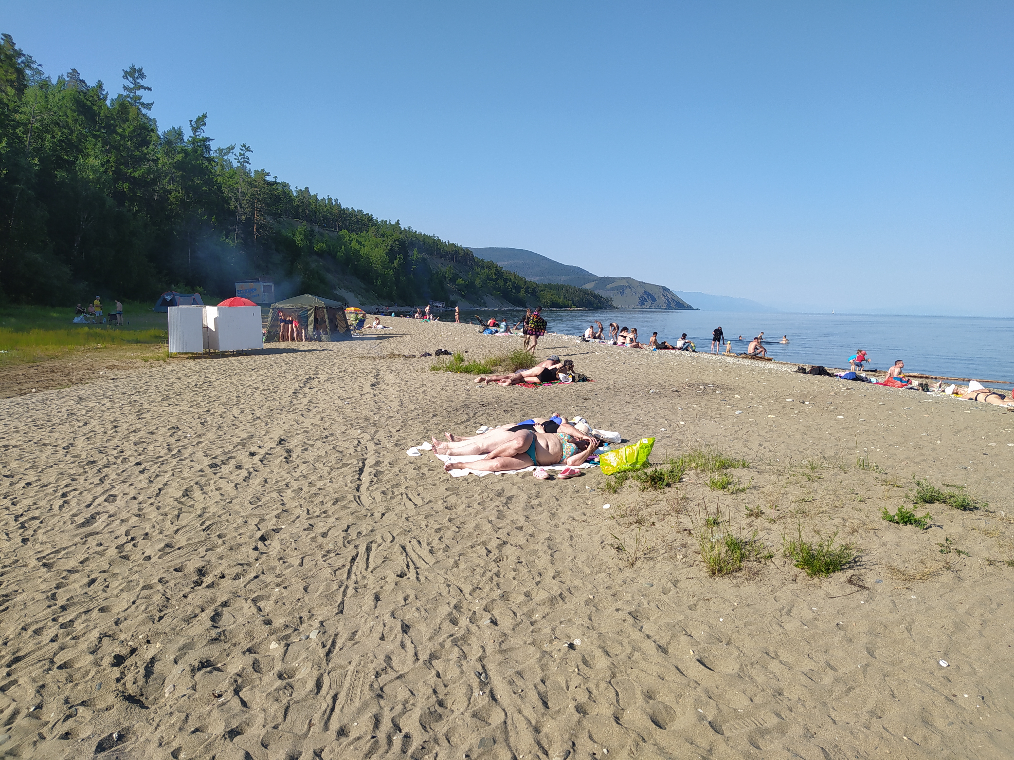 День жаркий сегодня, на пляже многолюдно. Вода вообще как в море - ощущение, что все 25 градусов. Как она так прогрелась внезапно - хз... Вчера жары не было.