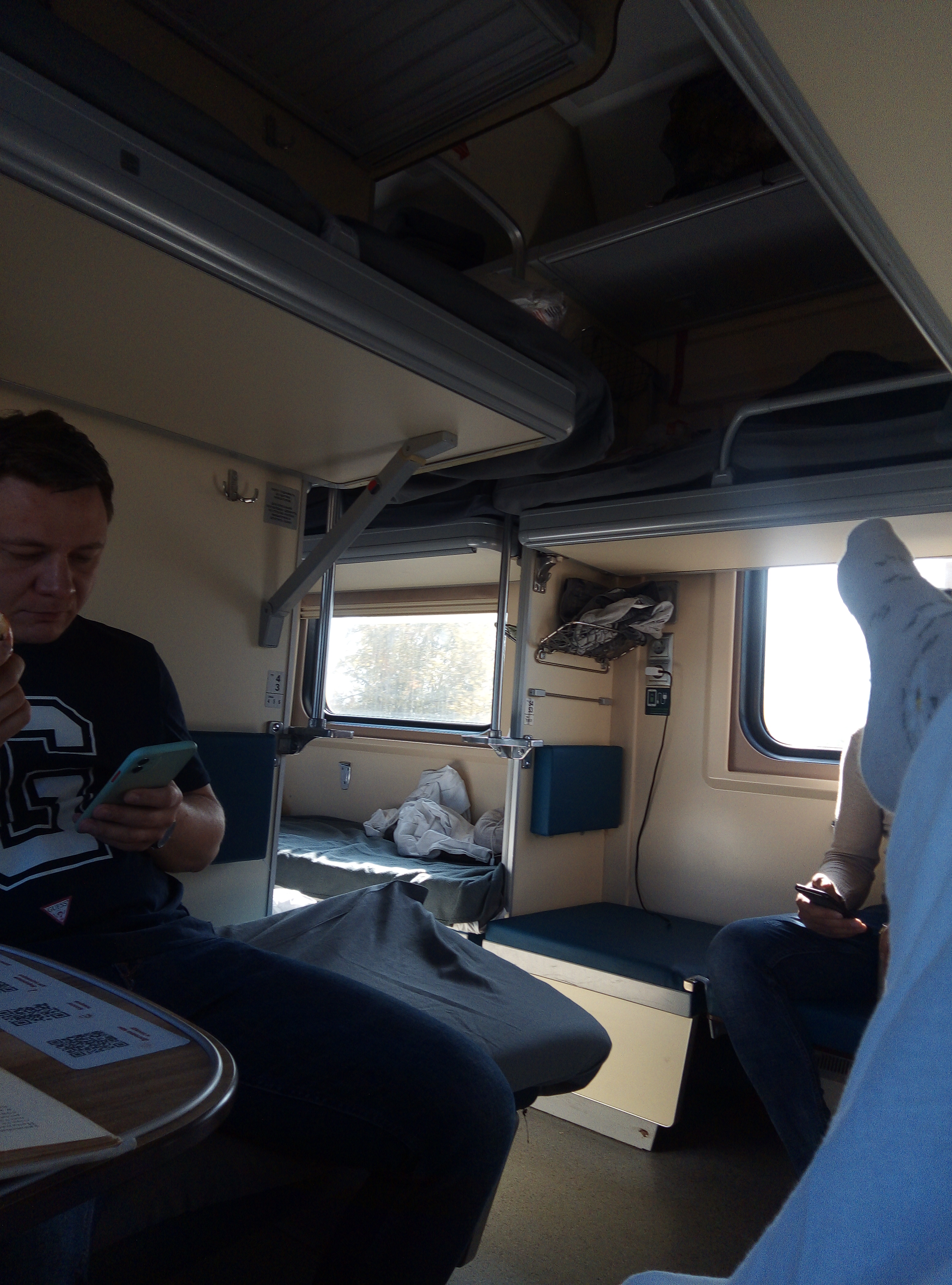 Первая ночь в плацкарте прошла средне. В соседнем отчеке мужик кашлял, как паровоз, а через отсек в 3 ночи тетки громко смеялись, разговаривали. Спасли беруши. Под утро стало душновато, открыла окно. Люблю свежий воздух. В Новосибирске сменится мой отсек, нерусские выйдут и мужчина с нижней полки. Он сначала мне показался красивым,о потом разглядела, мужик обычный. В вагоне почти одни мужики, в соседнем вагоне 50 на 50. Я поняла, что длительная езда скучно, мне интересно почаще делать пересадки, двигаться, гулять, смотреть новое. Шило в попе с детства. В принципе есть нормально, слегка скучновато, интернета почти нет, кроме стоянок. Почитываю детскую книжку.