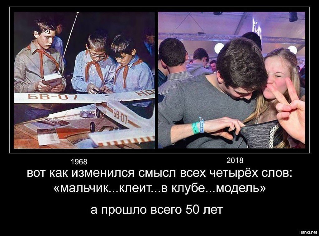 Есть еще одна фраза, которая по разному понимается лет 30 назад и сейчас: "Мальчик в клубе склеил модель"Фыва Цукен: сейчас подумал - лет тридцать назад фраза "соседи тихо лежат в телефонах" явно вызвала бы у собеседников ступор. а сейчас вроде бы и нормально...