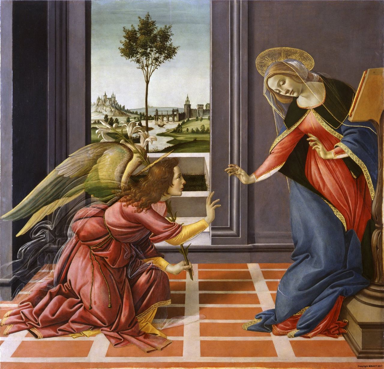Это «Благовещение», оригинал вроде находится в итальянской Уффици. Я когда увидел в первый раз ее, то обалдел. Мария будто отталкивает Ангела с его лилией: «Нет, не надо, кто я такая?». Но уже приняла эту весть. «Благовещение» было написано для монастыря Честелло, ради него Боттичелли даже прервал работу над другим важным заказом. Это поздний Сандро. Некогда шутник и бражник, теперь он вовсю читает Блаженного Августина. Другие шедевры Сандро Боттичелли можно также увидеть в Государственном музее изобразительных искусств имени А.С. Пушкина![]()