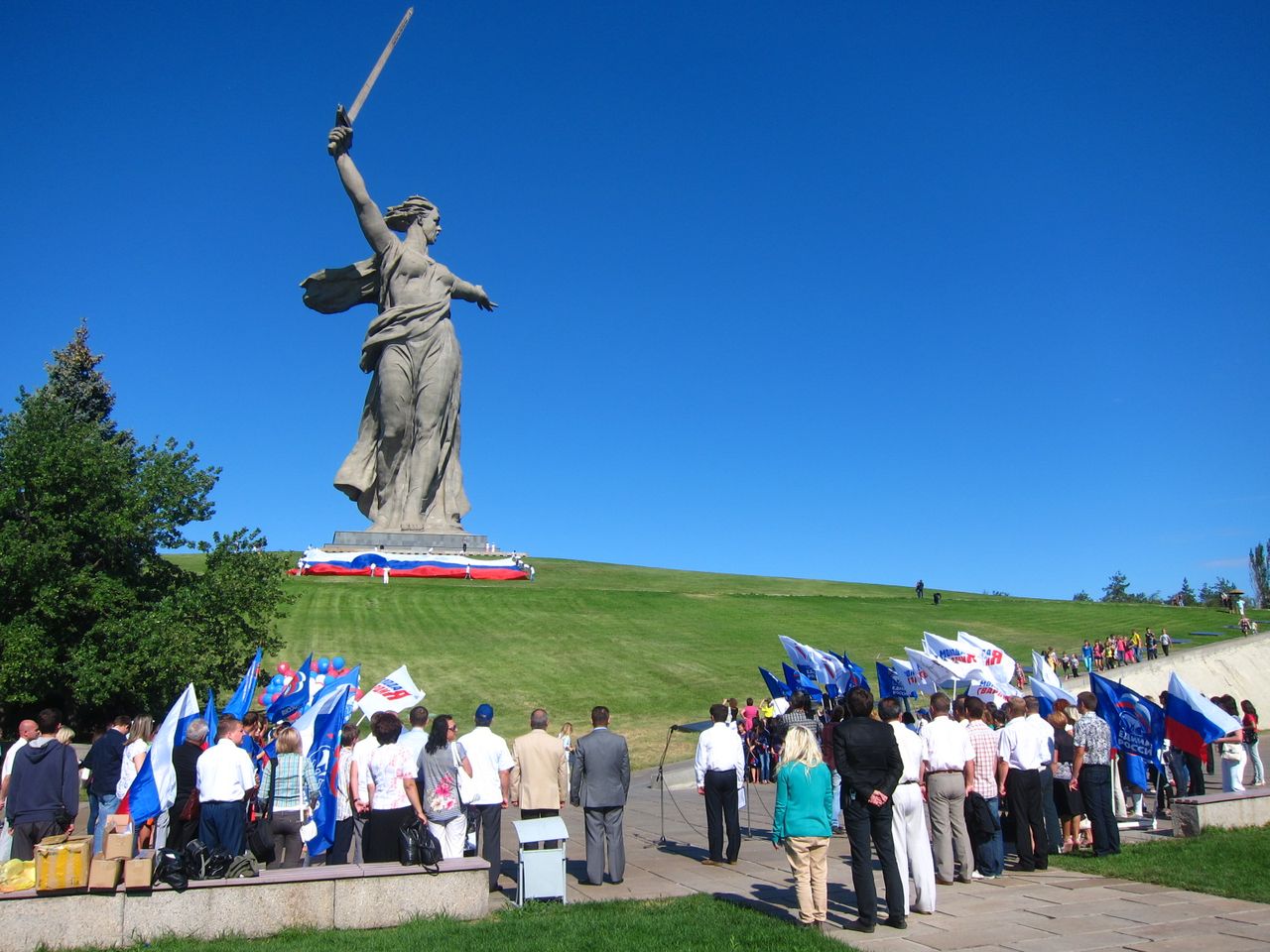 Путь поезда в сторону Москвы в черте Волгограда невелик, но можно увидеть и Родину-Мать слева по ходу