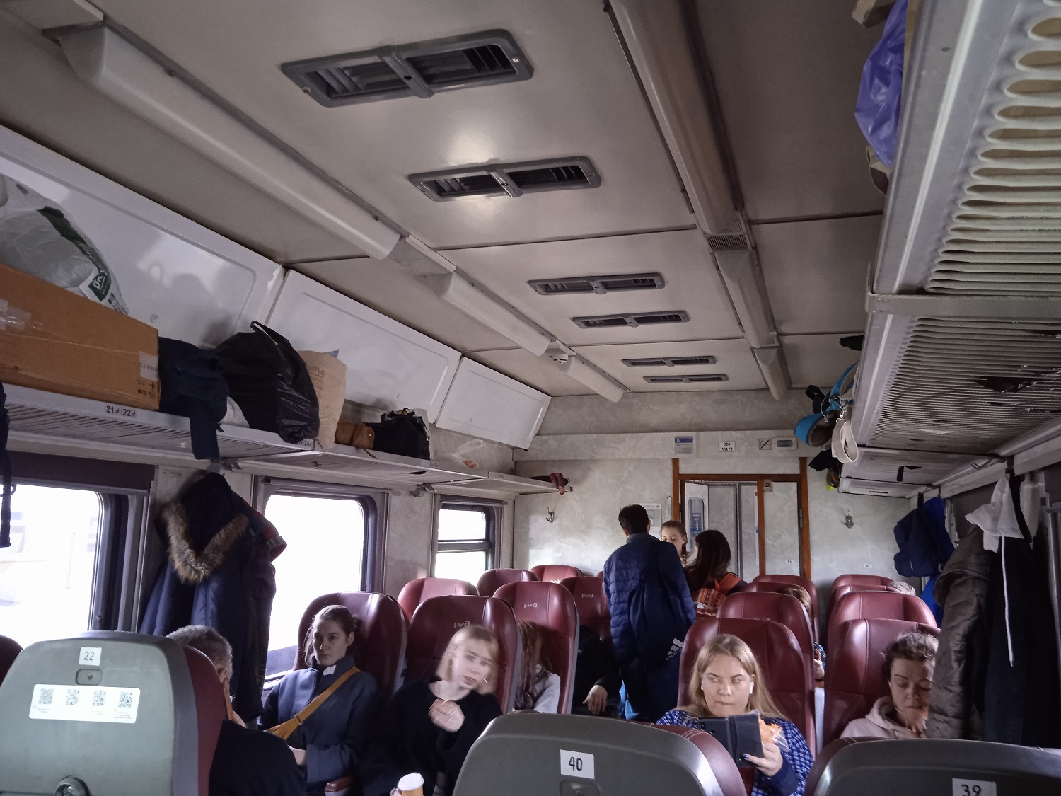 Интерьер новой сидячки в пригородном поезде Боровичи - Угловка