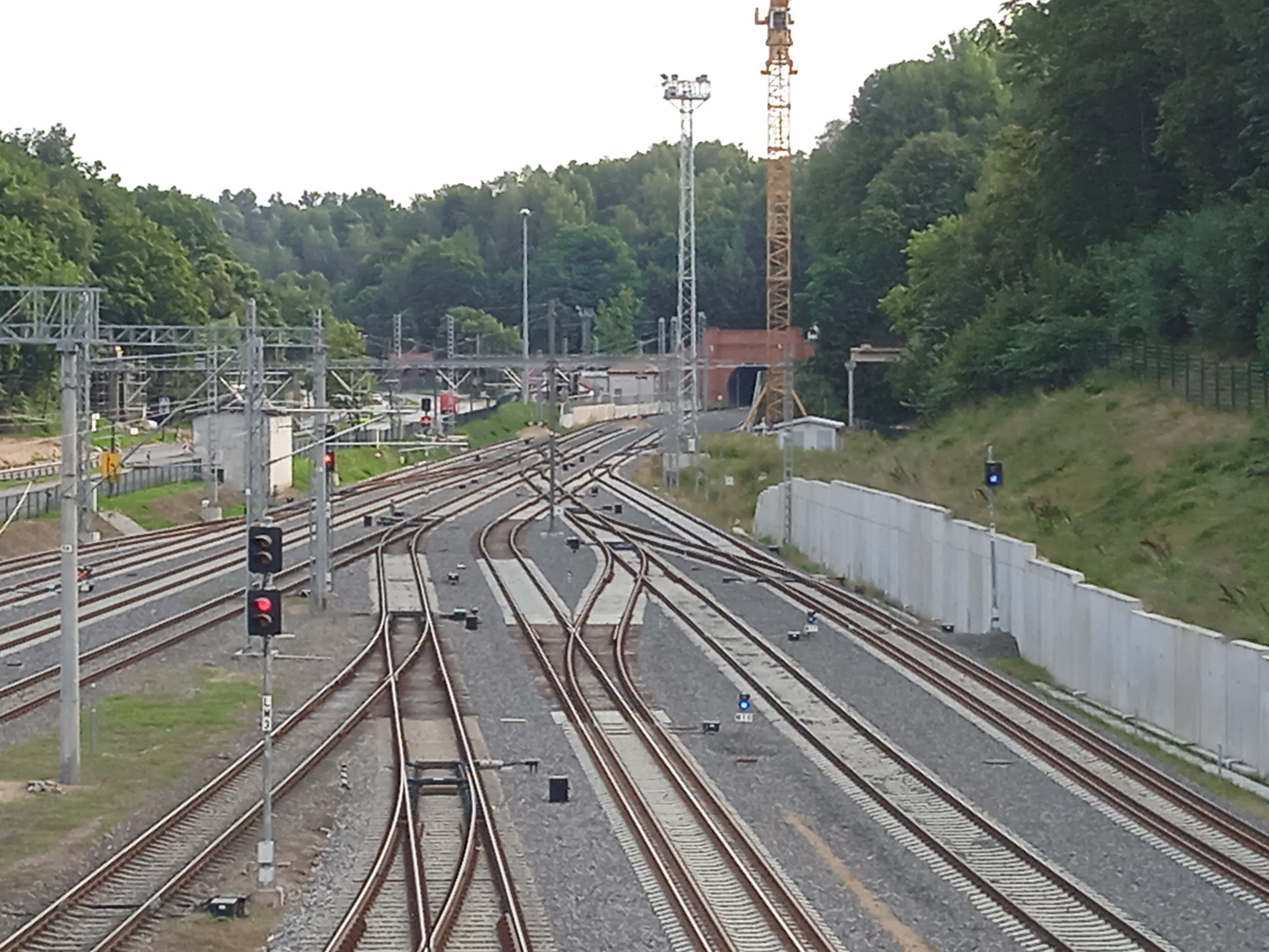В Каунасе под 1435 выделена третья платформа и два пути около нее. На восток путь 1435 идет в сторону тоннеля, а вот заходит ли в тоннель – с моста не видно, в этот раз пройтись посмотреть времени не хватит. Заезд 1453 в грузовой парк делать начали и бросили, рельсы обрываются в никуда. Никакого ПС на 1435 кроме одного поезда, который и поедет в 9-10 в Белосток, в Каунасе замечено не было.