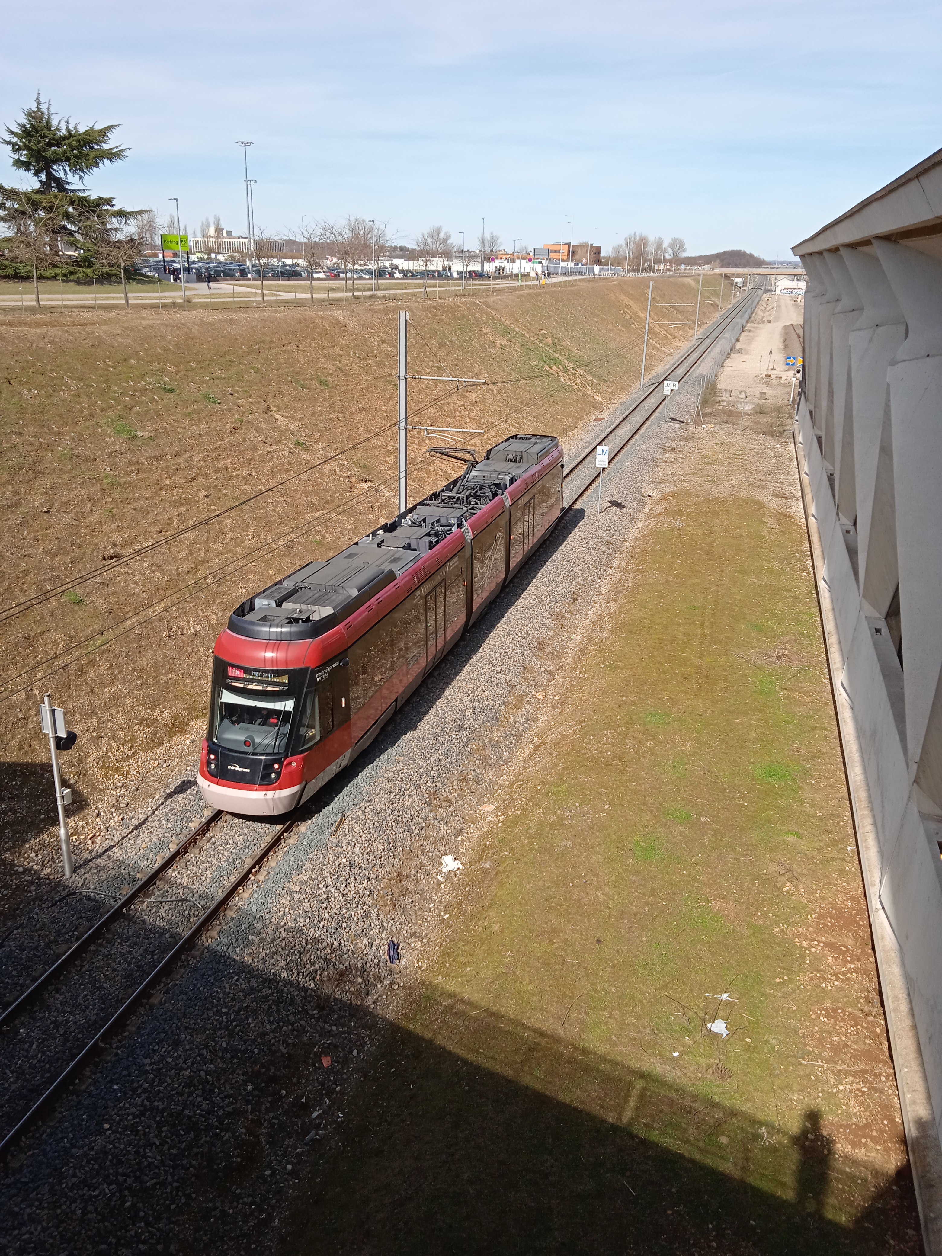 В 20 км к востоку находится транспортный узел Сент-Экзюпери, состоящий из аэропорта и станции на скоростной ЖД линии Париж-Марсель. Головные пути станции платформ не имеют и предназначены для безостановочного проследования станции без снижения скорости. Поезда с остановкой в Сент-Экзюпери принимаются на боковые пути. С городом Сент-Экзюпери связан трамвайной линией Рона Экспресс, по которой курсируют трамваи Штадлер Танго. Линия 22 км, в пути 29 минут. В пределах города трамвай едет по тем же путям, что и городские трамваи.