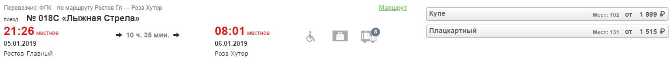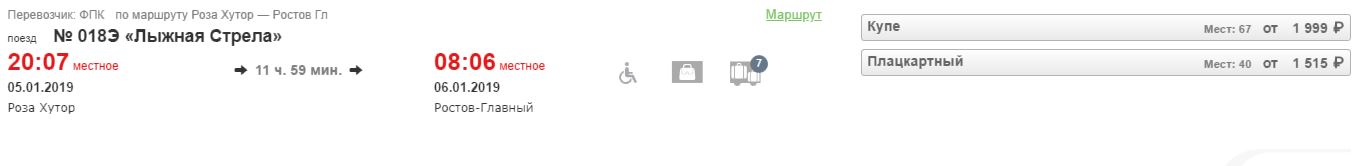 "Лыжная Стрела" №018/ 017 Ростов - Роза Хутор (ежедневно по 07.01, кроме 30.12, 31.12)