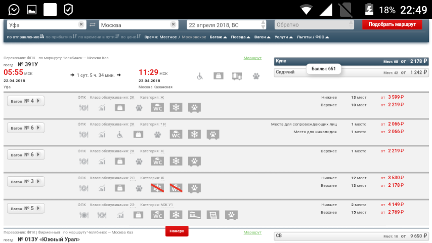 Кстати, в последнее время купе 392 если брать за 90 суток оказывается сильно дешевым. На лето стабильная цена всего 2200 за верх, что в Уфу, что из нее. Взял уже в Уфу на него билет, обратно скорее всего тоже. Правда билет в шатбной вагон разлетаются быстро.