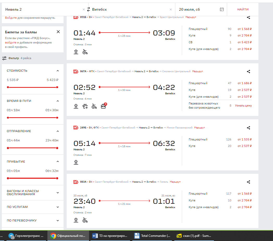 А теперь, для чистоты эксперимента запросим места по маршруту Невель-Витебск