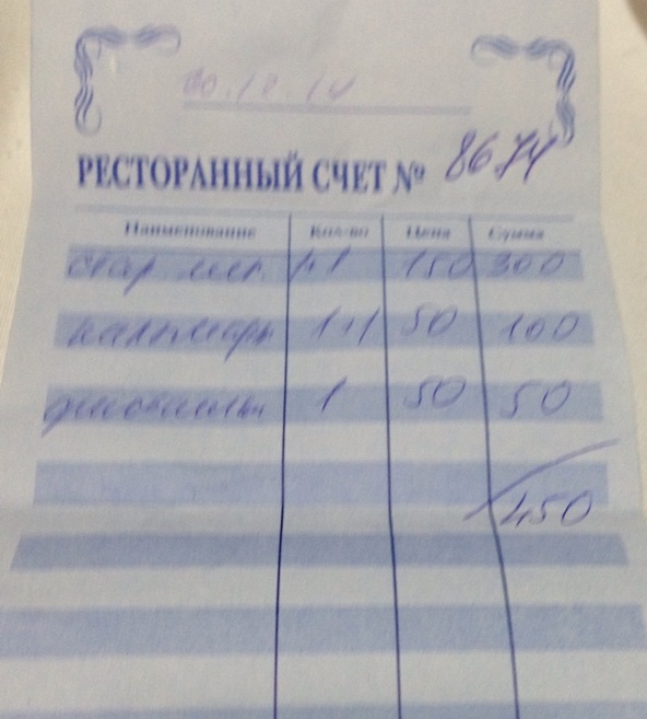 Но потом узнал, что есть в наличии водка (дорогая, зараза, аж по 300 рублей за 50 грамм), заказав ее, перешел на закуски: