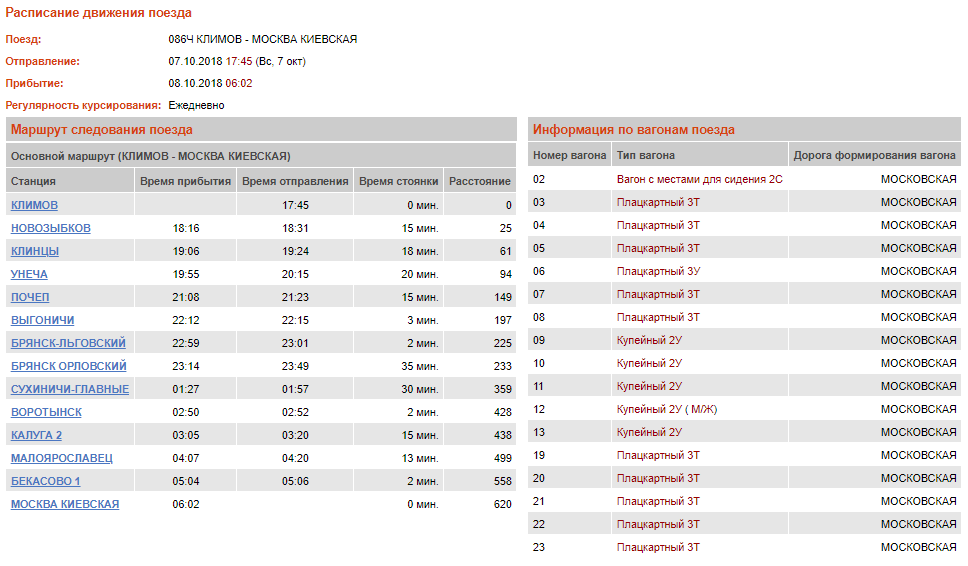 Видимо из-за писем Арсения лица, принимавшие решения по Брянску, решили Брянску максимально поднасрать. Ну, пусть будет на их совести. А для улучшение совести предлагаю спать этим идиотам таким графиком: 22:30 - 4:30 одну ночь, 0:15 - 6:02 другуюФред Спаркс:Арсений, вам совсем не угодитьFhctybq:Так и было всегда, что 086 и 100 практически шли одинаковым графиком, только с нового графика график 086 испортили по сравнению с нынешним графиком, замедлив на участке Климов - Брянск и ускорив на Брянск-Москва. На моей памяти, у 086 по Брянску никогда не было стоянки в 45 минут. А тут решили сделать 45 минут и отправление в 00:15.Dionysos: А вот в направлении на Москву этот поезд для Брянска по времени ничего…