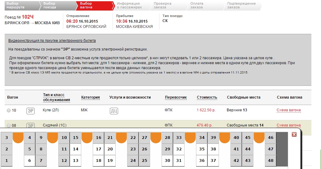 При покупке билетов на сайте РЖД на поезда 101Ч/102Ч,103М/104М,105/106М в вагоны 8 и 11 (42 места) будьте осторожны. При запросе схемы вагона, показывается на сайте схема вагона на 48 мест, то есть купейная сидячка. Программисты РЖД даже схему вагона не могут вовремя заменить.