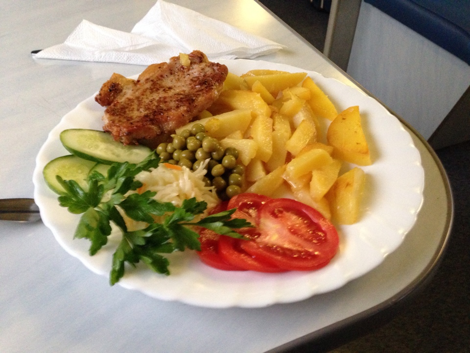 Кстати, я не стал заказывать первое блюдо (борщ, солянка или грибной суп) за 300 рублей. Кстати, яичница стоит тоже 300 рублей. Я даже задумался - может это маркетинговый ход такой? Когда работали казино, то в Москве в ночном клубе при казино и ресторане Метелица - вся водка была по одной цене (что-то около 200 рублей за 40 гр), причем не важно "Столичная" или "Русский стандарт". Как мне объяснили это был такой маркетинговый ход - что б люди пили то, что любят, а не выбирали по цене. Но сравнивать вагон-ресторан сухумского поезда с рестораном на Новом Арбате в Москве, мягко говоря, странно...
