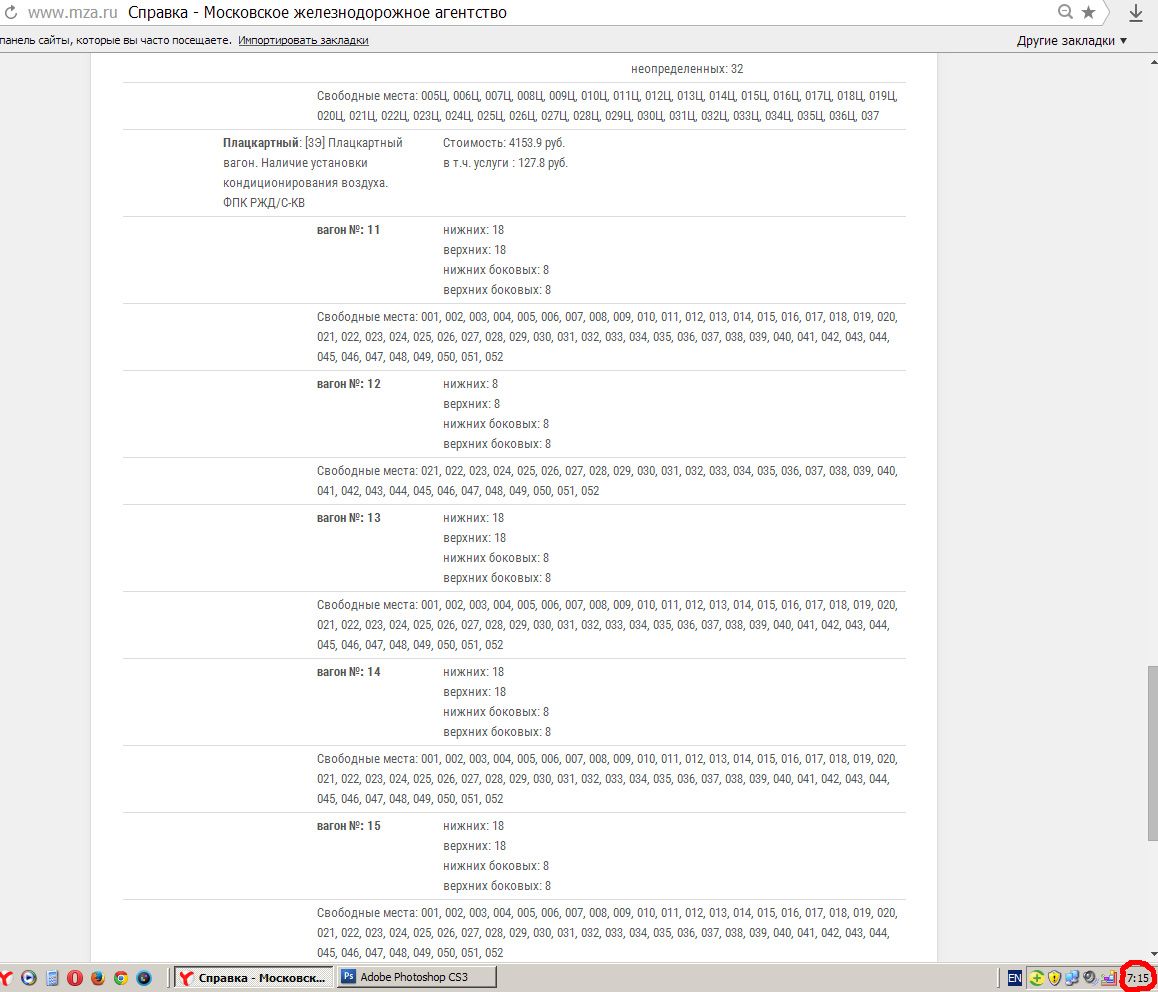 Ольга_М:простояла до 8.00 плацкарт в продаже был только 6 билетов на поезд № 11/12