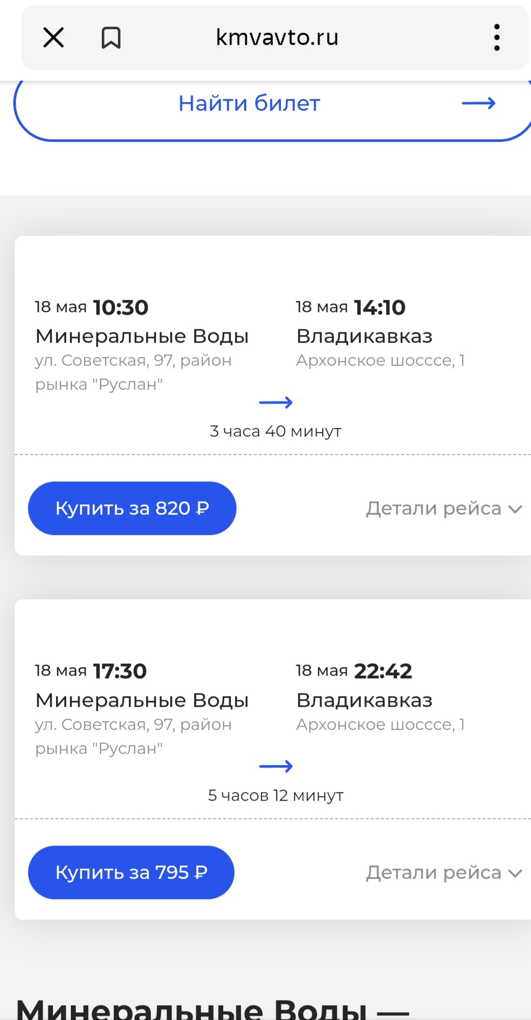 Оффтоп: а есть ли маршрутки между МинВодами и Владикавказом? Яндекс путешествия показывает две утром за не очень приятные деньги (как сидячка в поезде примерно), а остальные просто безумные