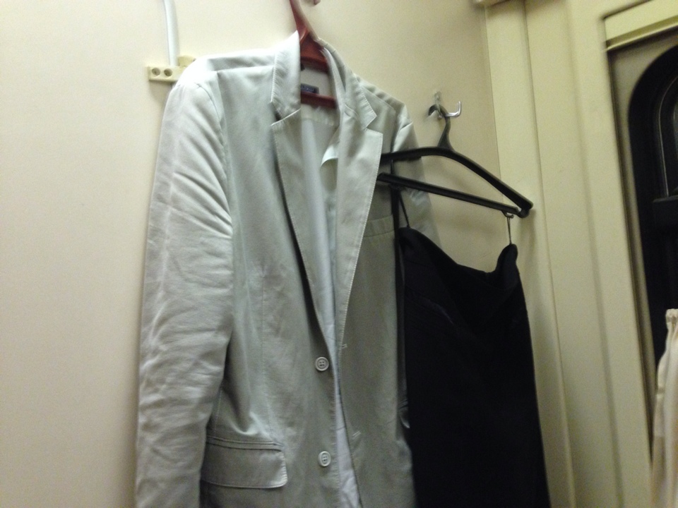 Хотел вернуть проводнице, но она опередила меня, попросив не трогать ее вещи. После того, как повесил свои - возникла интригующая картинка (думал ее даже в разделе про секс в поездах разместить):