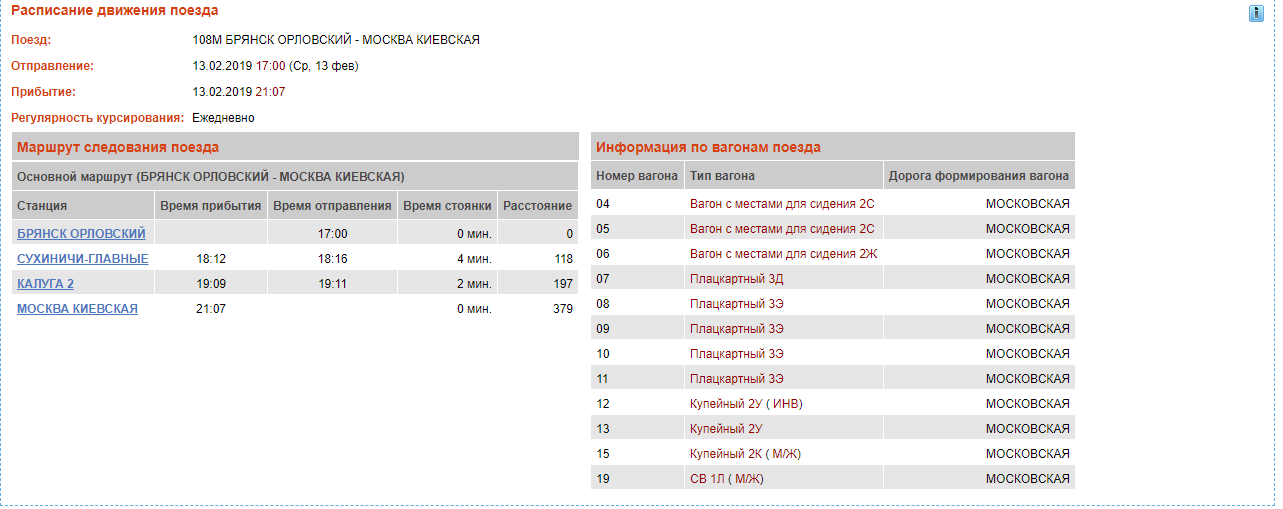 Сегодня 108М опоздал в Москву на 55 минуты фактическое движение поезда, при этом 085Ч ушел по графику (схема 108М и 085Ч совпадают). Интересно, как за 12 минут могли подготовить состав? Поезд чуть больше часа простоял в Сухиничах или из-за погодных условий, хотя другие поезда не опаздывали на Москву, или сдох ЭП20/ЭП10?