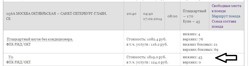 А вот так вот выглядит ситуация с наличием мест на 056 поезд Москва-Питер на завтра:П.Д.С.:Зачем представлять? Знакомы с такими обстоятельствами.serg:А представьте, что у вас бы было три соседа по купе и они после отправления, к примеру, начали бы кушать курочку, яички и т.п. и т.д. - смогли бы вы лечь спать?