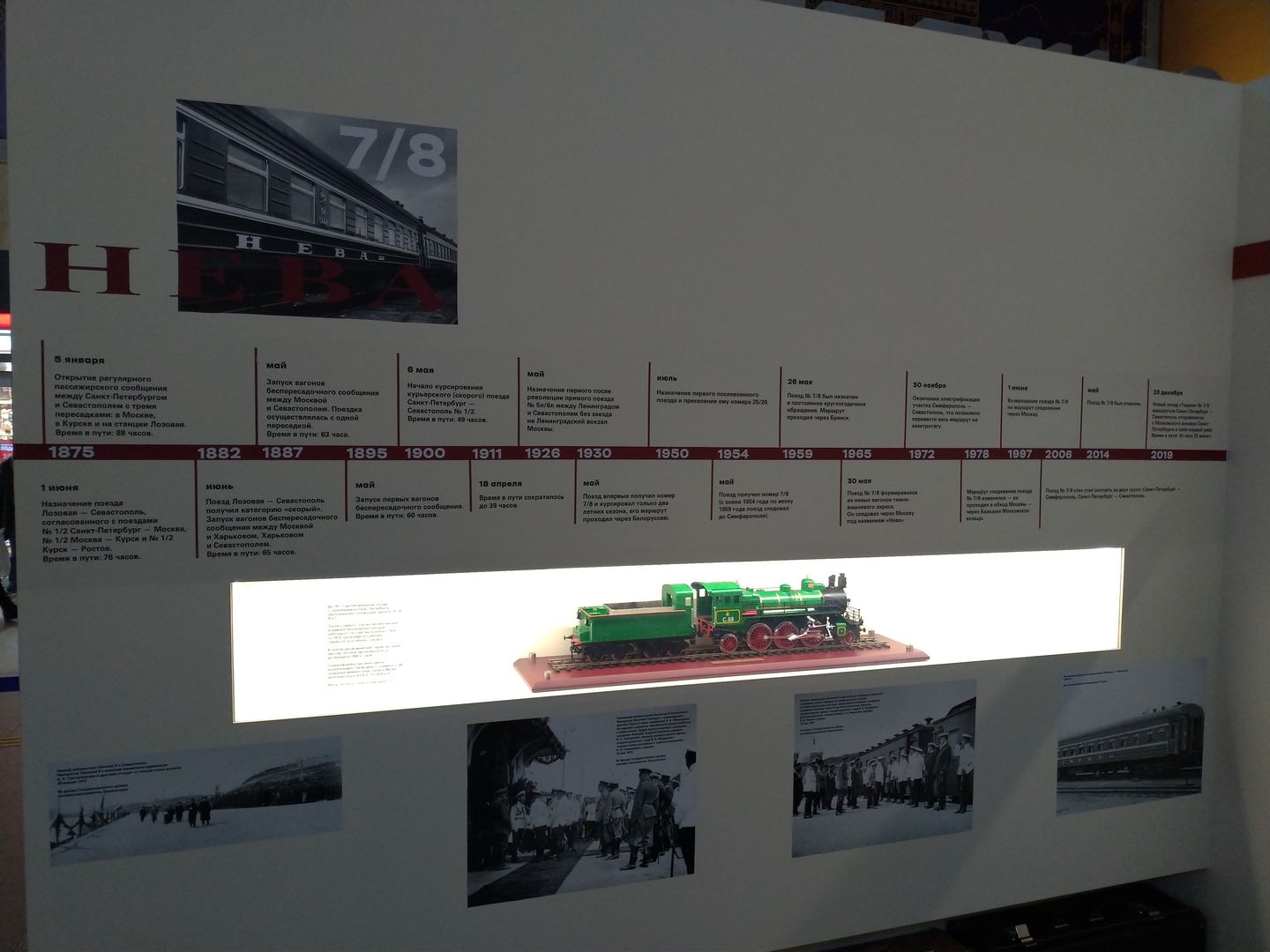 На Московском вокзале в Световом зале установлен стенд, посвященный истории поезда N7/8 Санкт-Петербург - Севастополь