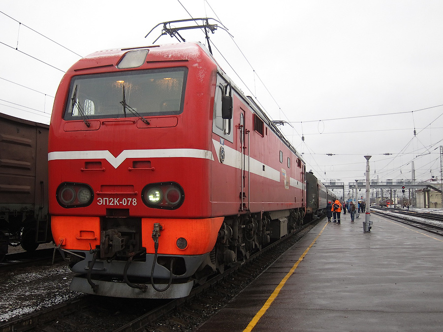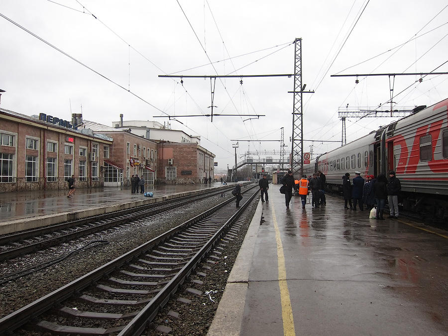 Состав скорого фирменного поезда №026Н "Сибиряк" Москва - Новосибирск на станции Пермь-II под ЭП2К-191. Обрубок, к сожалению: схема состава - 1Л+4К+2П+ВР. У первой платформы (на дальнем плане) мариновался поезд №109М Новый Уренгой - Москва, как