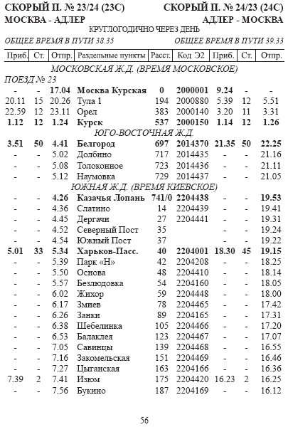Наша поездка на поезде 023С Москва-Адлер была 30 августа 2011 года, началась уже неприятно с того, что при остановке поезда мы поняли, что у нас последний вагон, подбегая с чемоданами к двери видим не проводника, а какого-то мужика без всякой форменной одежды, он попросил показать билеты, сославшись на то, что проводница спит, она устала, а он - то-ли мастер, то-ли электрик этого поезда. Мы зашли в купе, непонятный мужик принес нам с мужем два набора белья. Когда разобрались решили попить чайку - ни тут то было, чайник в вагоне был холодный, не беда, познакомились с попутчиком, кстати работником РЖД, ехавшим в отпуск, время было много, решили лечь спать, ни тут то было, проводница из соседнего вагона принесла заполнять какие-то бумажки для проезда через границу. Вобщем проводницу свою мы увидели на слудующий день около 11 часов утра со стойким запахом перегара и опухшей физиономией после того как какой-то дедок начал орать Что за безобразие, это будет ее последний рейс, я буду жаловаться! Проводница взяла чайник и набирала кипяток из соседнего вагона, разносила по купе, наш "самовар" не работал. Лампочки в купе можно сказать не горели вовсе. Таможня хохлятская тоже все обыскивала, спрашивает: Ножи везете? Я говорю: "Да, кухонный" Так он его вертел, крутил, нюхал, вообще ужас, в сумках рылся, у соседа нашего взял сувенир из сумки - зеркальце открывающееся - ну разве что не полизал его! Потом с собакой прошлись, поезд очень долго стоит на границах! А еще мужика там оштрафовали они - он в тамбуре курил ::-D: А в 5 утра следующего дня наш сосед будил проводницу, чтобы она ему дверь открыла А НЕ НАОБОРОТ! На тот момент лампочки у нас в купе уже совсем не горели. А подъезжая к Хосте проводница сказала пассажирам гениальное: Я вообще удивляюсь как этот вагон доехал, он в аварийном состоянии, в последний момент его в Москве прицепили. И несмотря на все это я рада путешествовать на поездах! Такие воспоминания остаются! :*DANCE*: