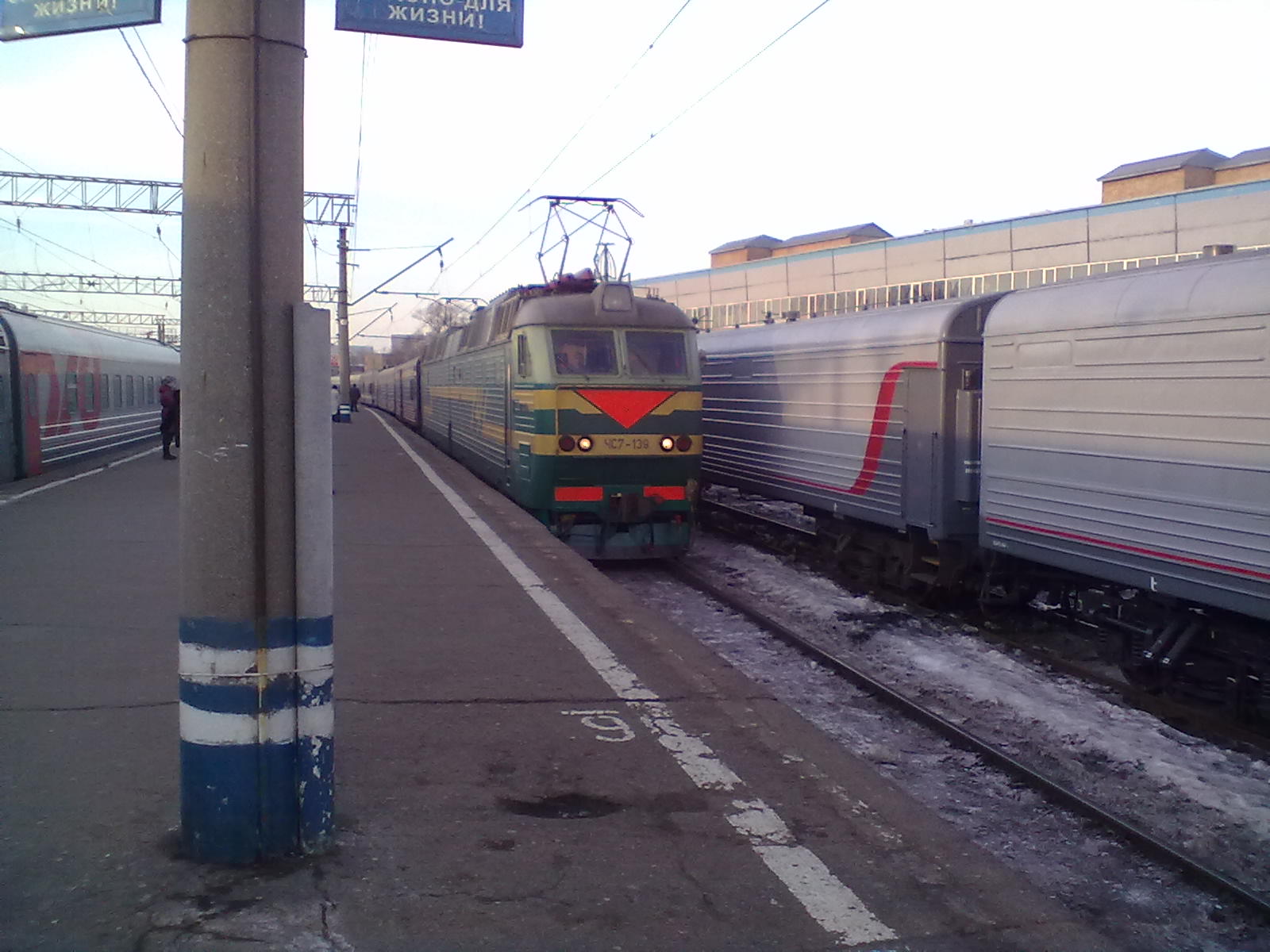 7. В Красноярске случился следующий инцидент. Там удумали два поезда 2 Москва – Владивосток и 1 Владивосток – Москва одновременно принять на одной платформе на соседних путях, при том что все остальные пути на станции были свободными.