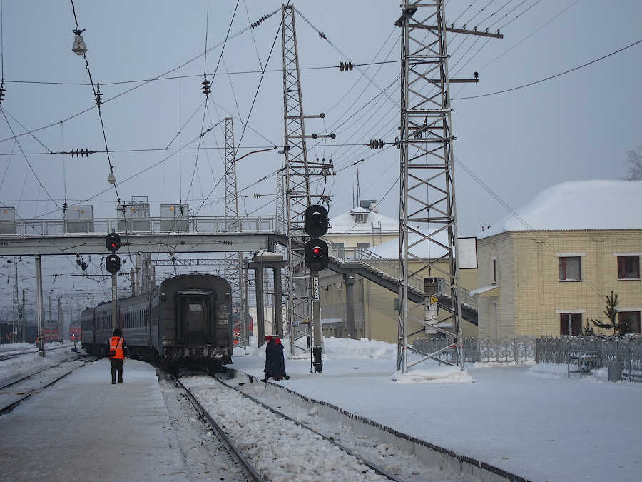 26 января 2014 года. Поезд 099Э Владивосток - Москва отправляется со ст. Балезино.