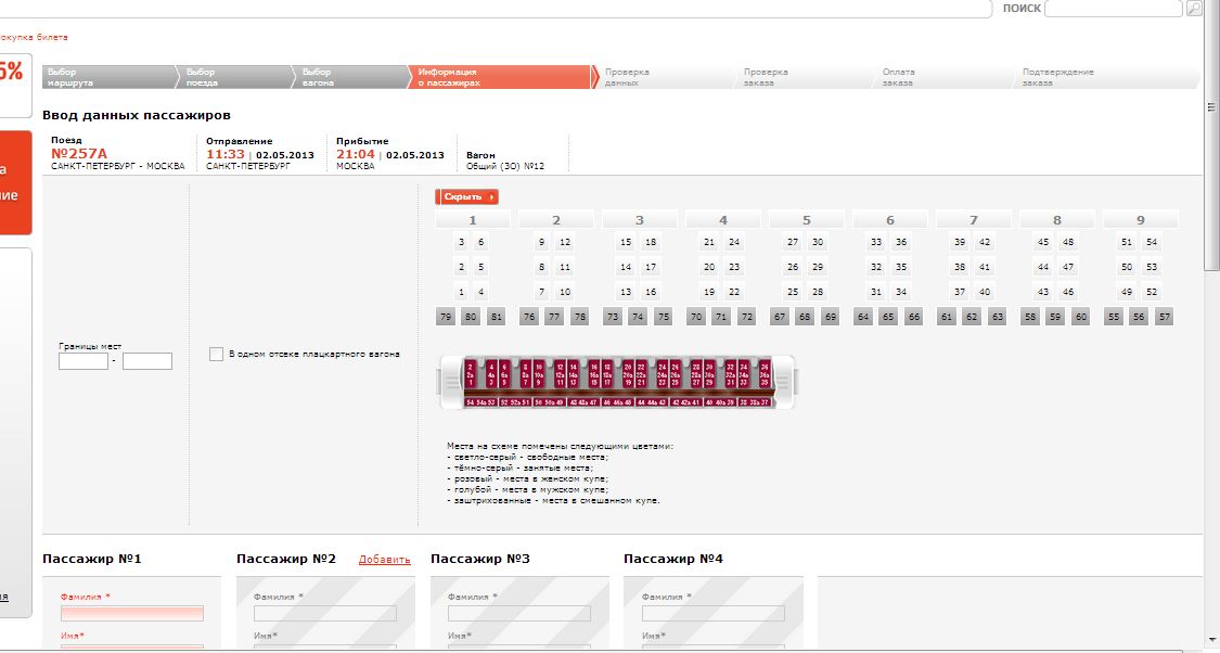 Можем. И можем повторить вышесказанное: вагон 08С количеством мест 54, первое купе не идет в продажу, поэтому в продаже 48 мест.Сергей М.Ф.:Вы сами что ли не можете ввести Питер–Москва 02.05.2013 и посмотреть этот поезд?