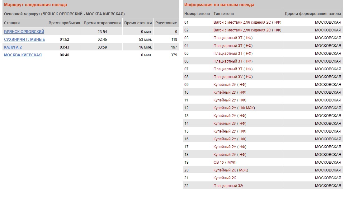 Не знаю. Точно не знаю. Я вот ради любопытства сегодня посмотрел на 100 из Брянска и на завтра климовский из Москвы. Количество вагонов не совпало (3Л НФ). Вернее, на 1 меньше. Хотя я никогда не ориентируюсь на сайт РЖД. Вся точная информация у местного ФПК. Хотя уверен в Москве-киевской оперативно корректируют схемы поездов.