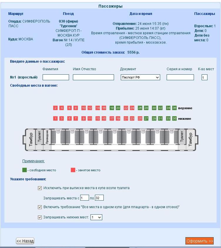 Вчера пошла в кассу. Очереди не было. На 24.06 из Симф без питания полностью купе мне предложили всего 2 варианта в 14 вагоне - либо второе купе от туалетов, либо первое от проводников. Взяла первое от проводников. Потом вспомнила, что в поезде "Тамбов" тубзики были и в начале и в конце вагона. Т.е. один фиг.