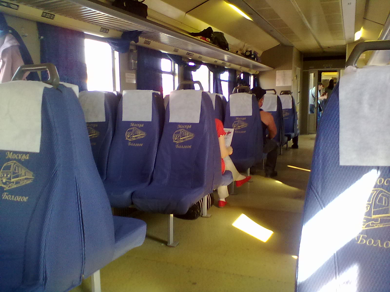 Надо сказать, что сидения в этом экспрессе примерно как в НОТе. Не особо мягкие, но куда мягче похожих сидений в спутниках ЭМ4. Чехлы на сидениях скрывают старую обивку: