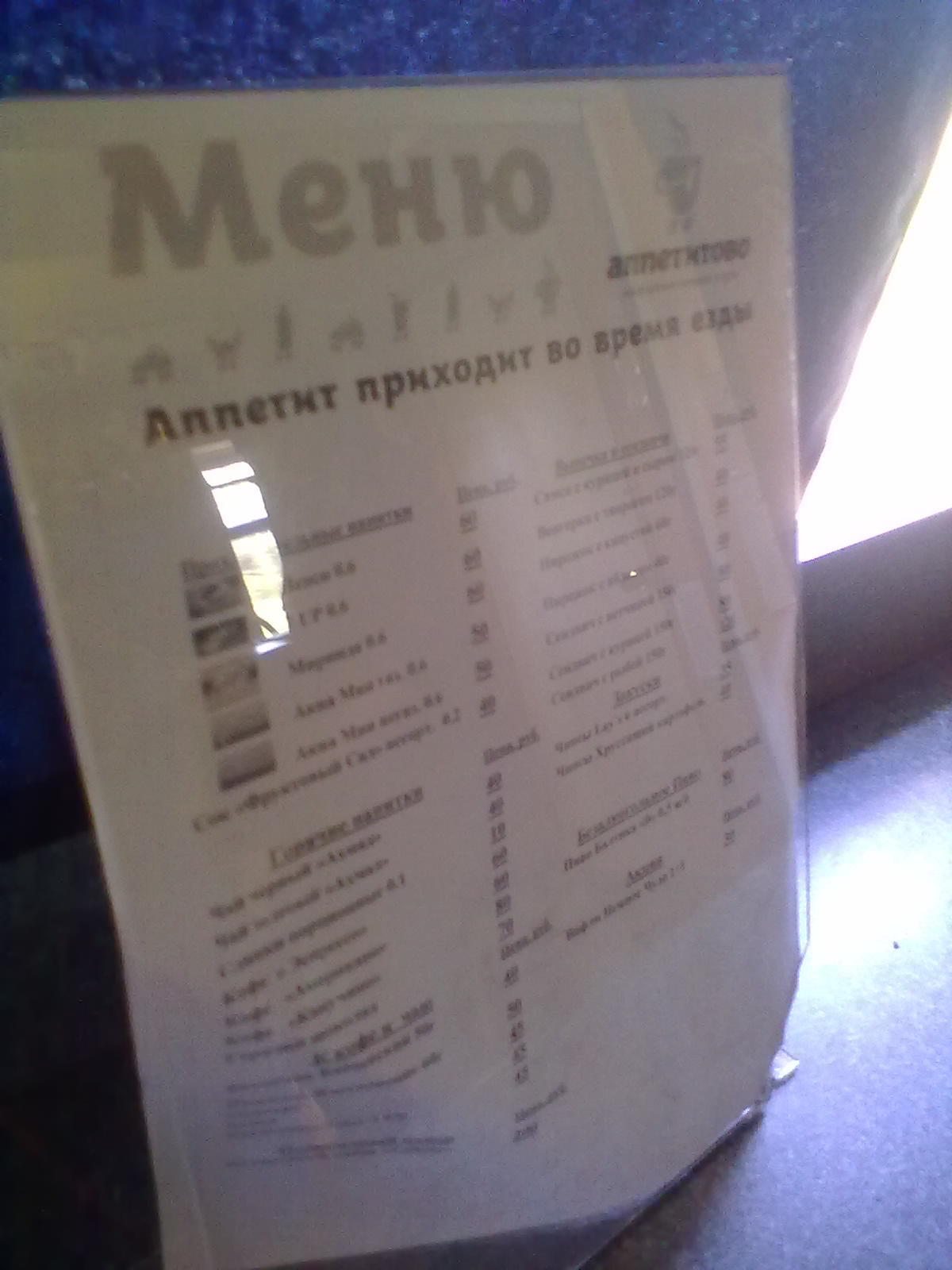 Меню вагона-бара:
