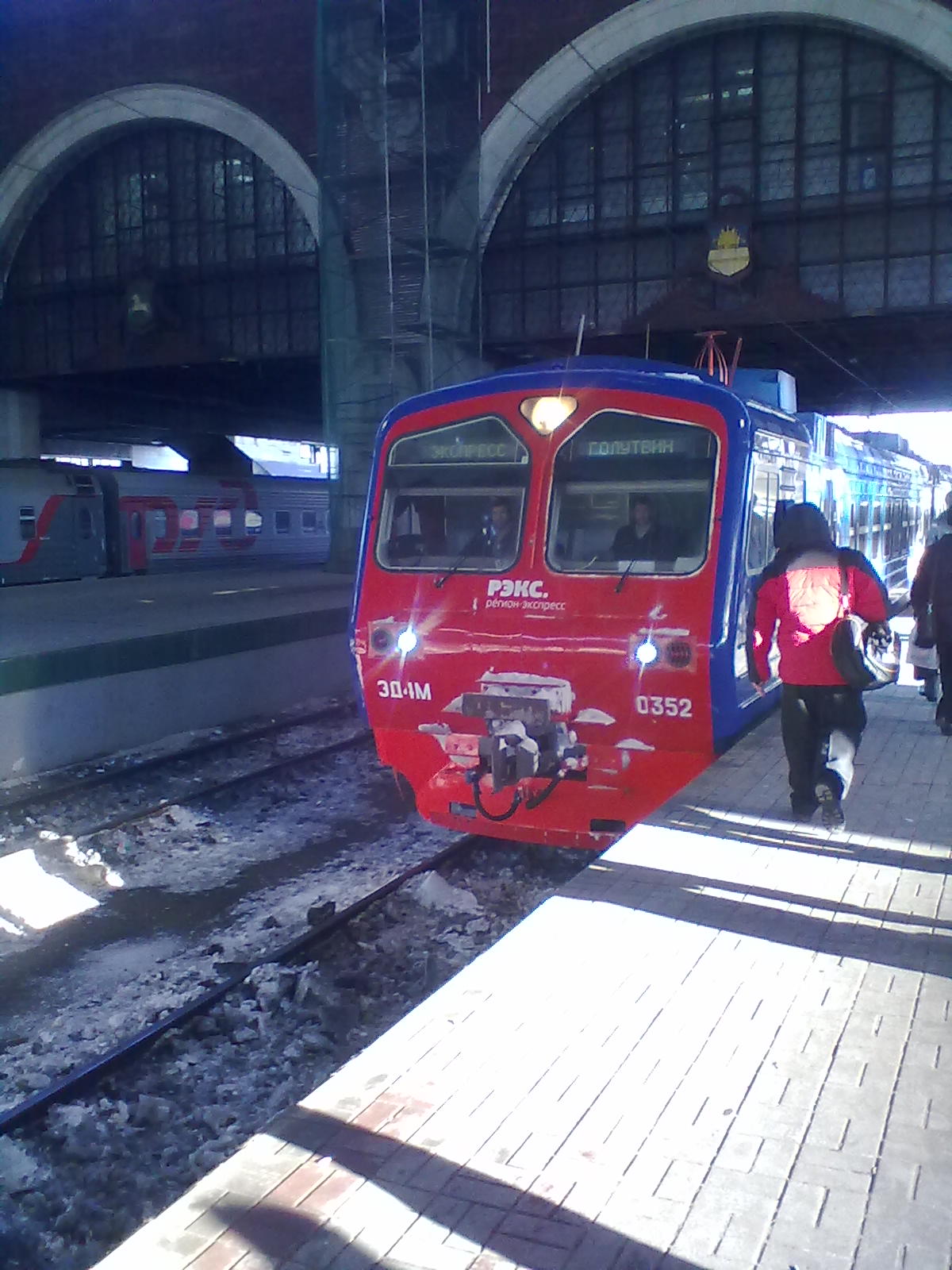Я не ожидал увидеть РЭКСа вместо привычной ЭМ4. Но, оказывается, РЭКСы катаются уже на спутниковых маршрутах до Раменского. Это была ЭД4М-0352. Раньше она ходила до Голутвина, но теперь по словам проводницы всегда будет ходить до Раменского. А до Голутвина теперь ходит ЭД4М-0353, которую оРЭКСили.